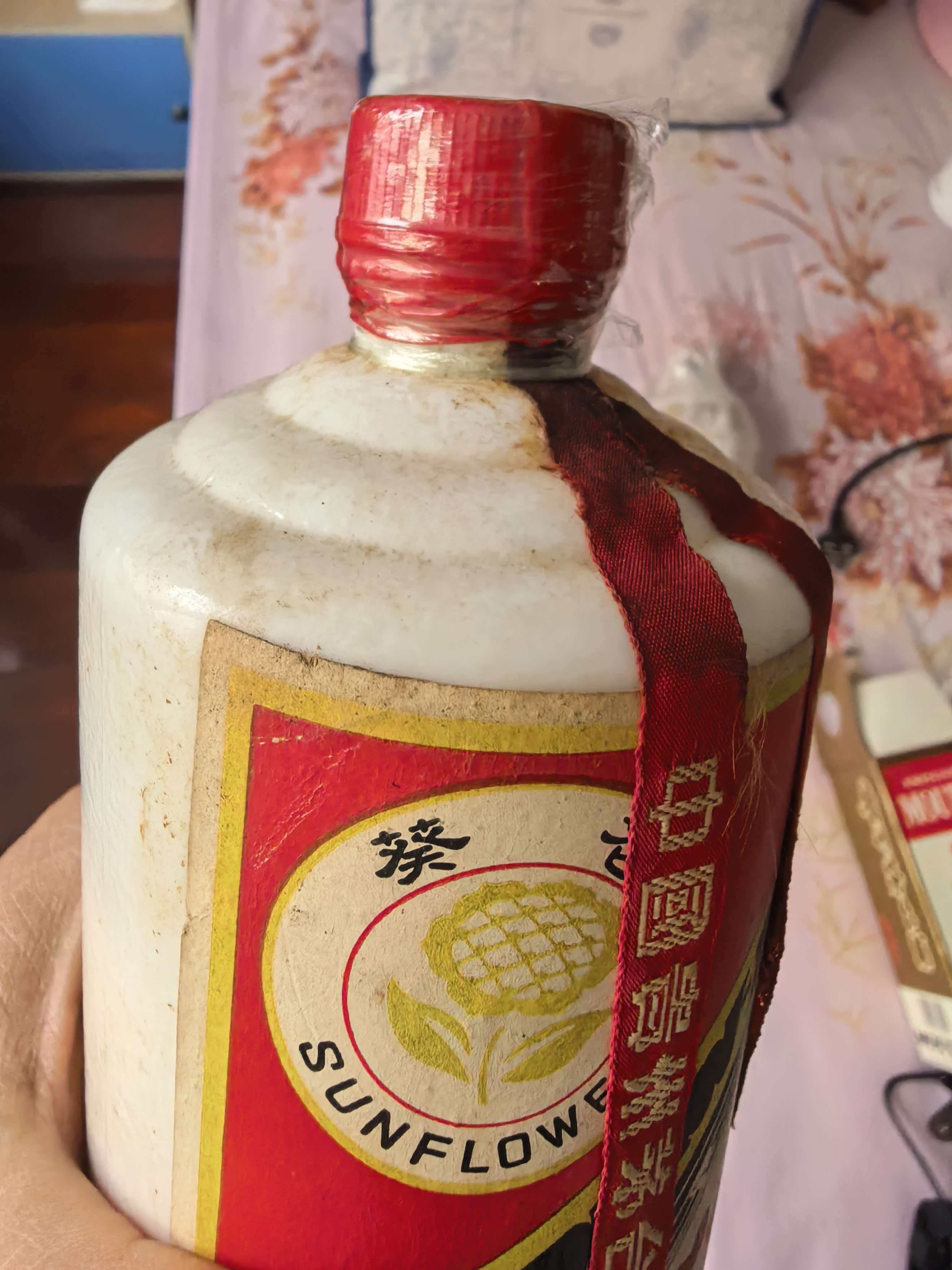 我家有一瓶茅台,六七十年代去茅台厂买的,几十年过去了,上面的绸带和标签都有些坏了