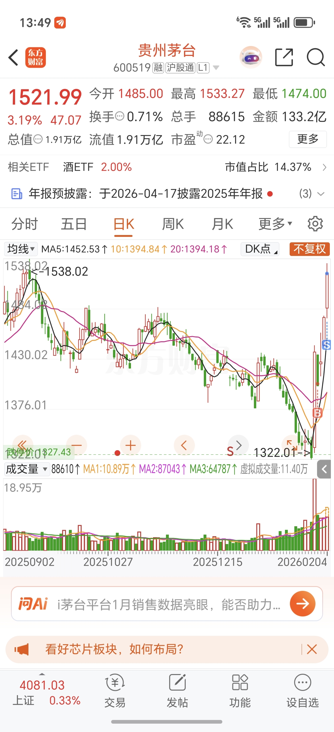 $贵州茅台(SH600519)$ 1482再重新进