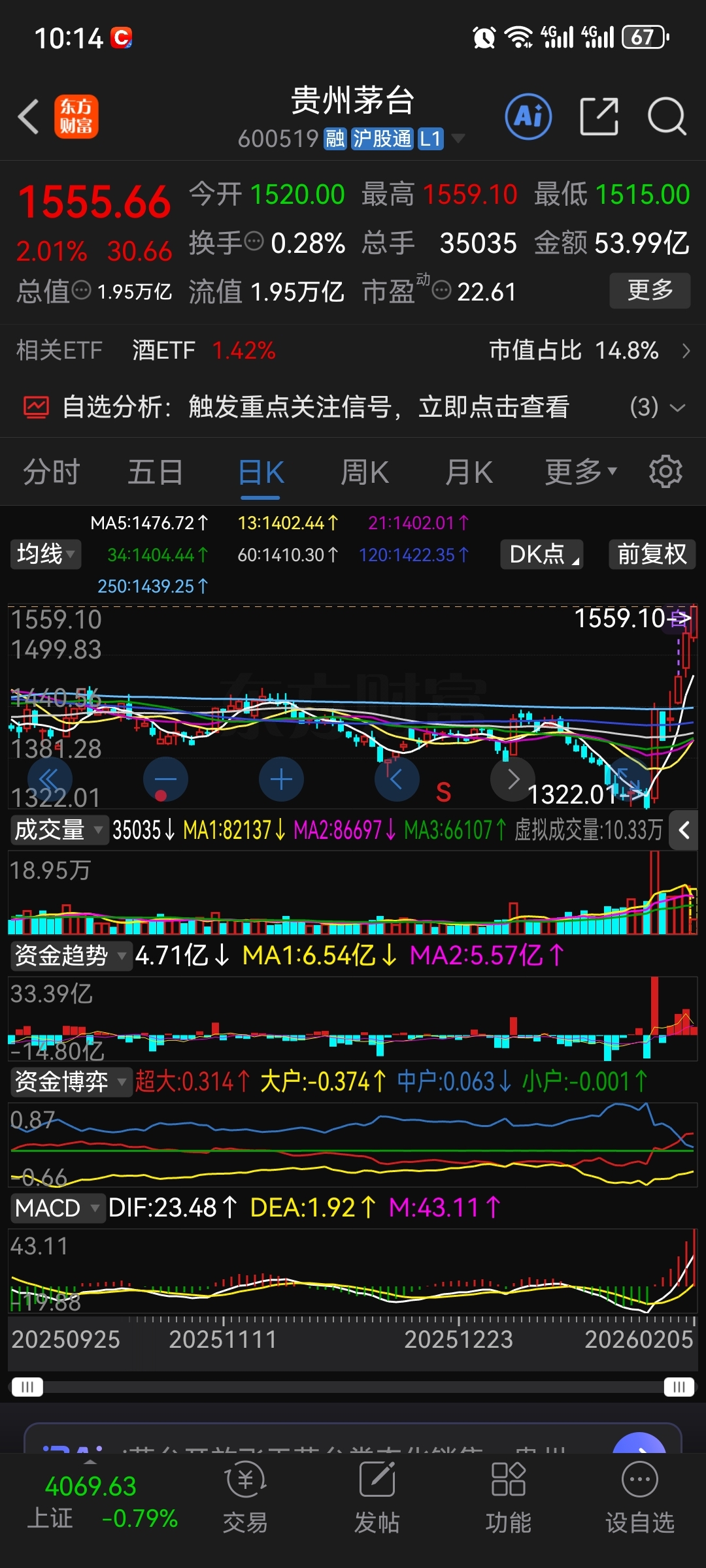 600519 贵州茅台 反弹阶段新高 在路上