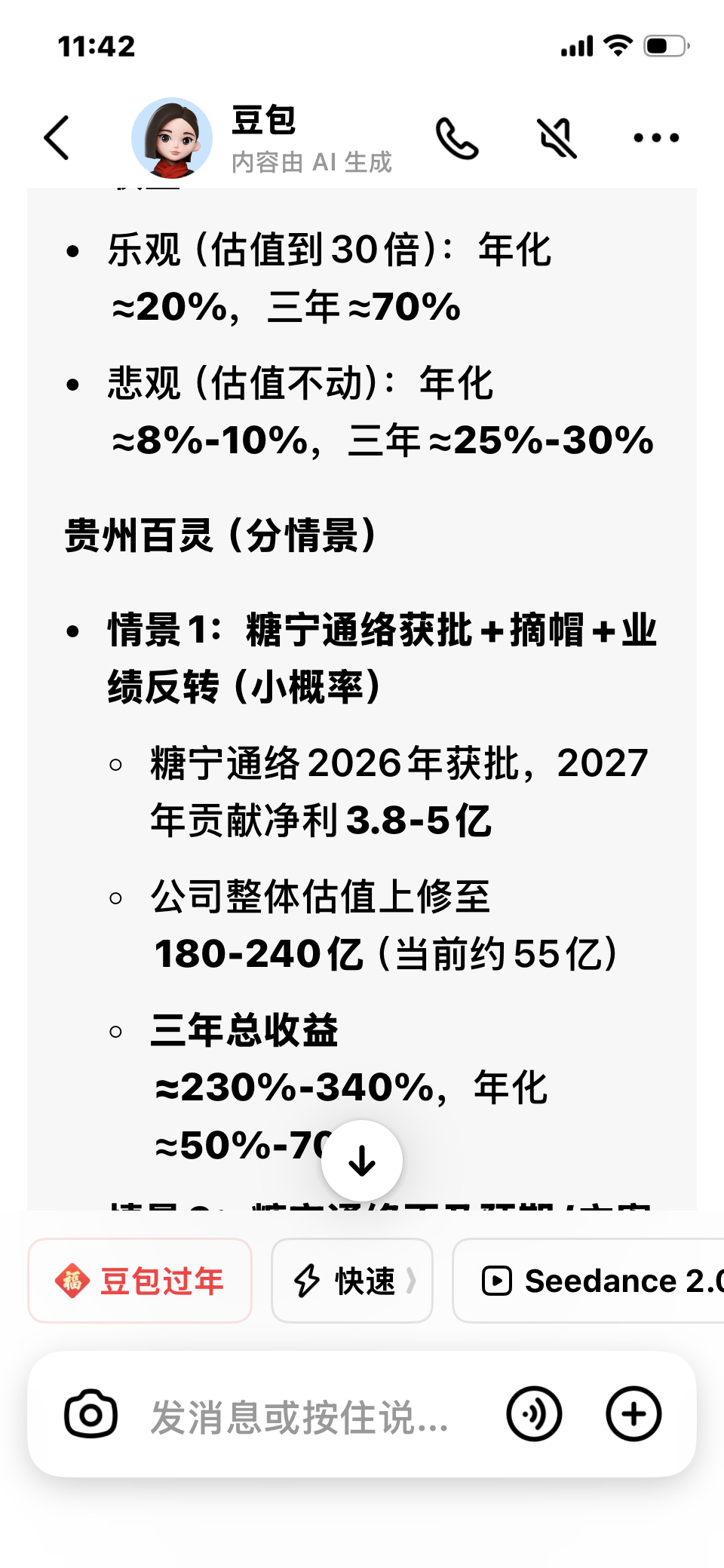大家都知道$贵州茅台(SH600519)$ 是我国A股的股王,而随着我国老龄化的进程贵州中药第一股贵州百灵的糖尿病药糖宁通络三期临床正在进行中今年六月份出结果,一个已经上万亿市值,一个几十亿市值是林园说的婴儿的股本,一个是参天大树谁更值得投资呢看豆包的分析。