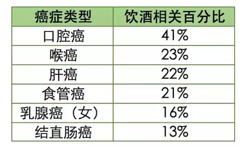 事实上,全世界5.5%的癌症发生和5.8%的癌症死亡是酒精引起的,也就是说每18个癌症里,就有一个是喝酒喝出来的。包括口腔癌,喉癌,食管癌,乳腺癌,肝癌,结直肠癌等。