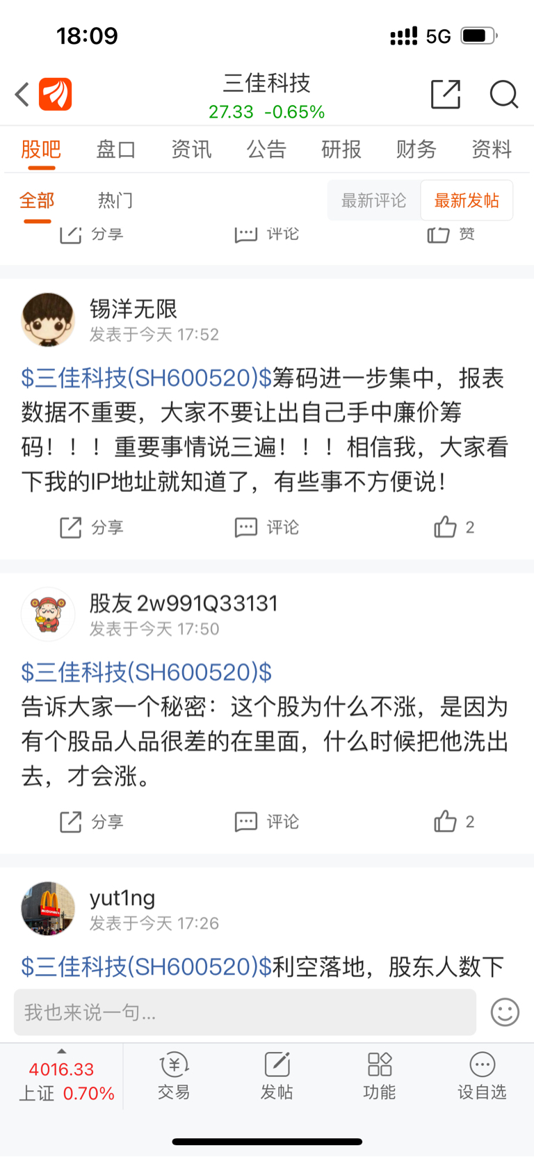 $三佳科技(SH600520)$