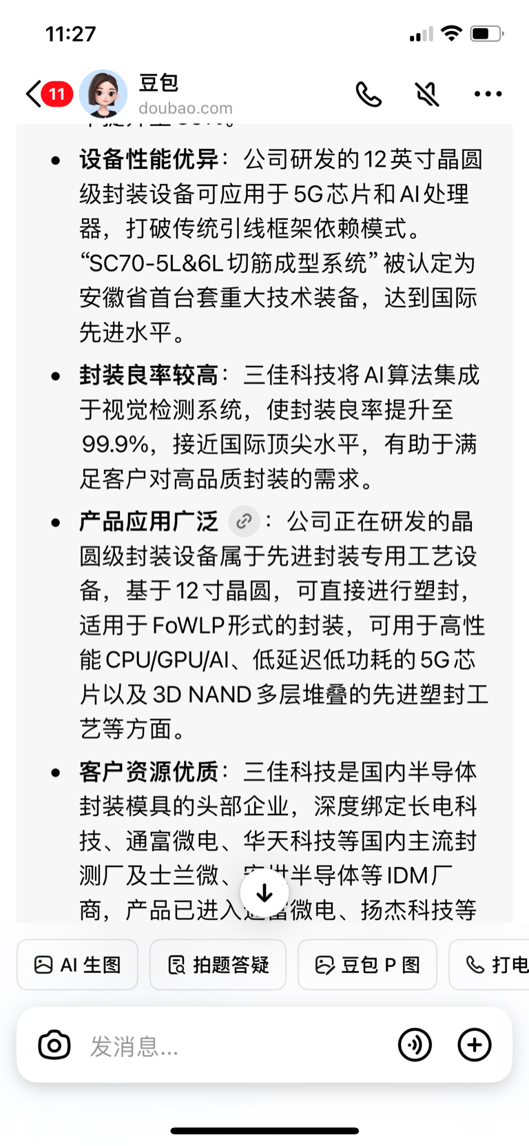 $三佳科技(SH600520)$ 你看看都是国际顶尖领先水平股价不涨、业绩不行吗、你这是什么顶尖、我问问、豆包不应该出现都是瞎扯