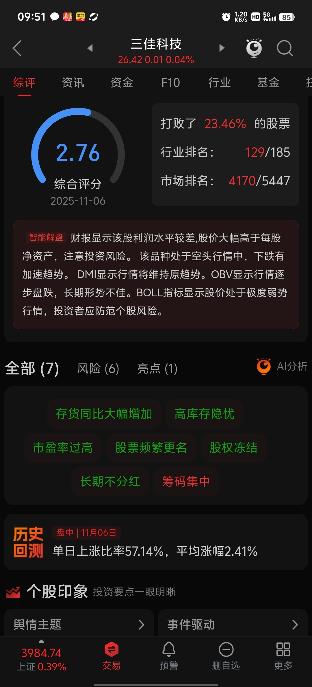 $三佳科技(SH600520)$ 看看这垃圾4170名