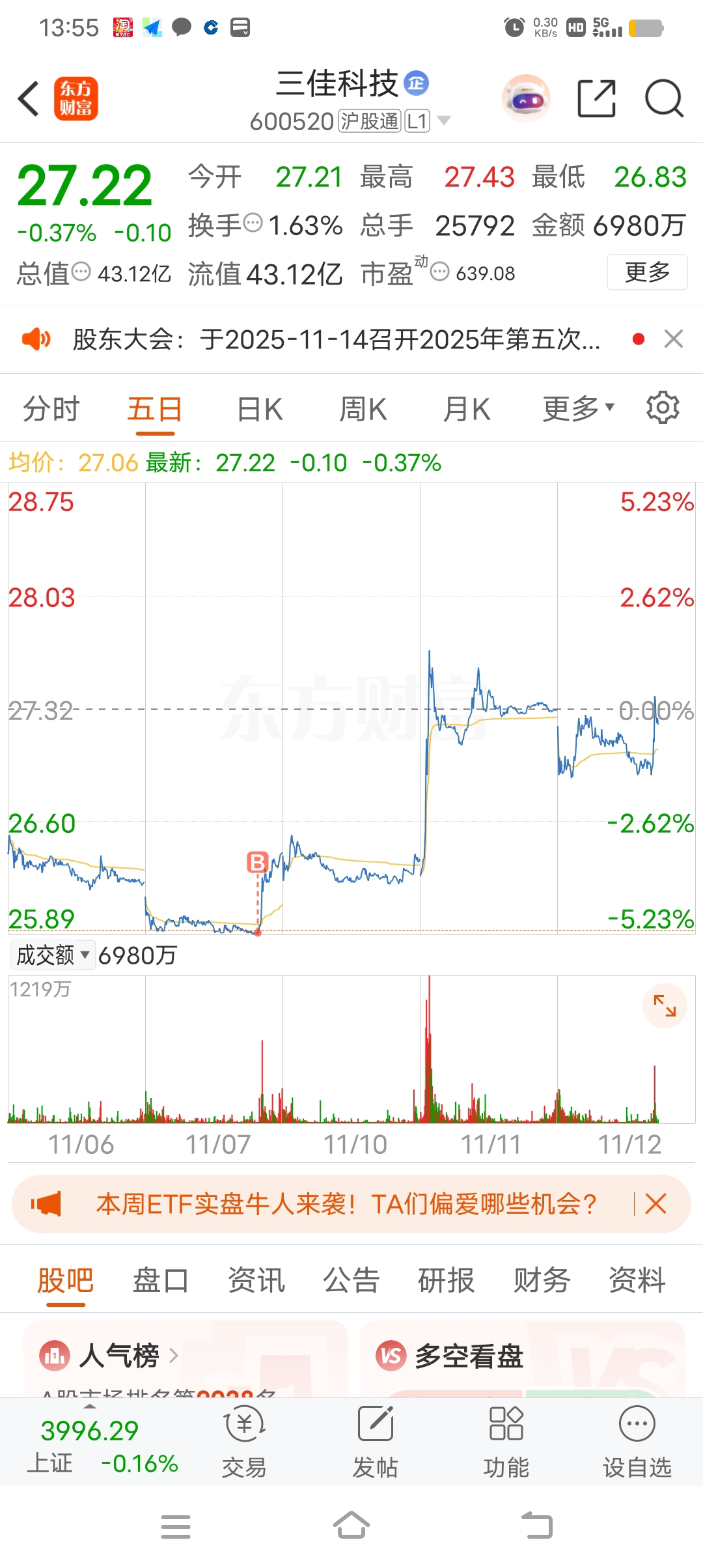 $三佳科技(SH600520)$ 一点儿都不慌,