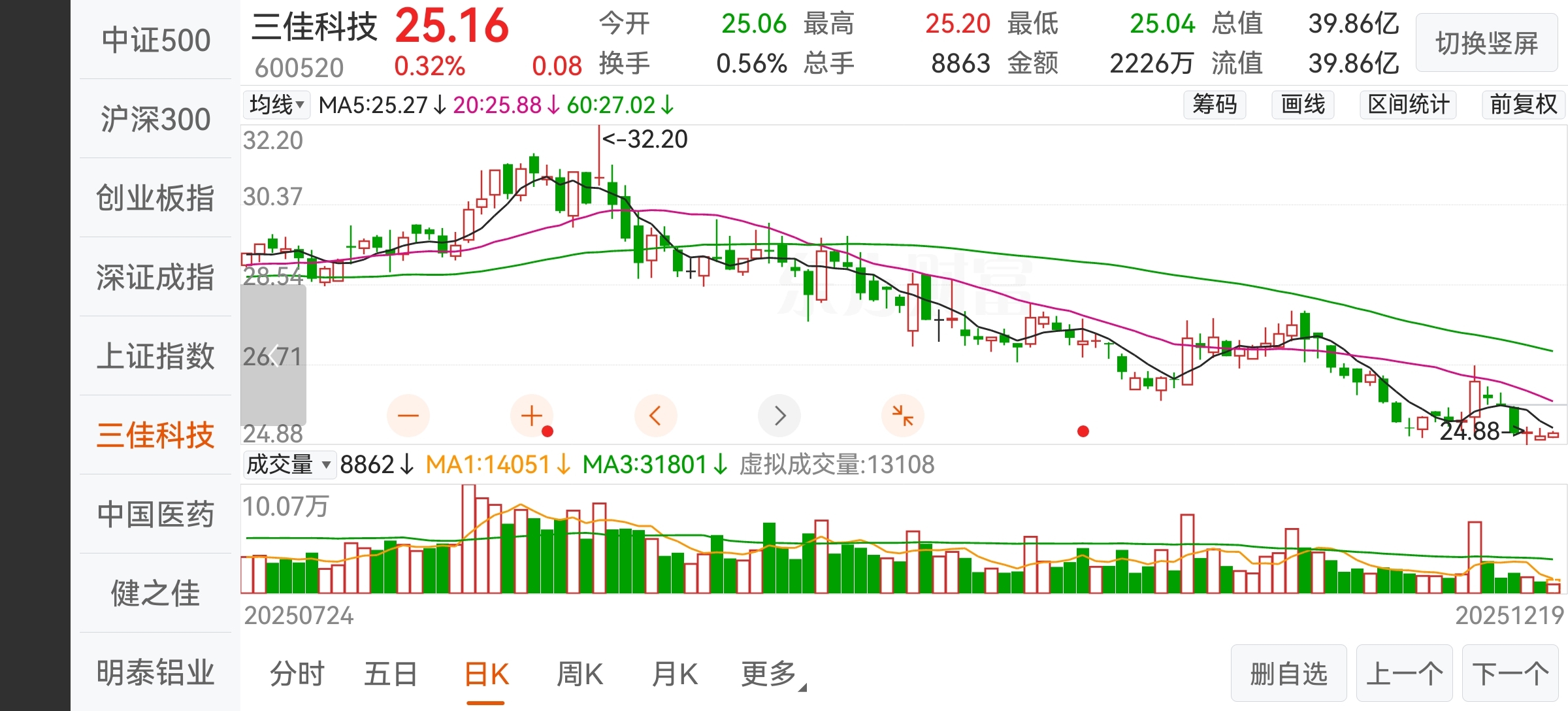 $三佳科技(SH600520)$ 向下还有两个台阶。