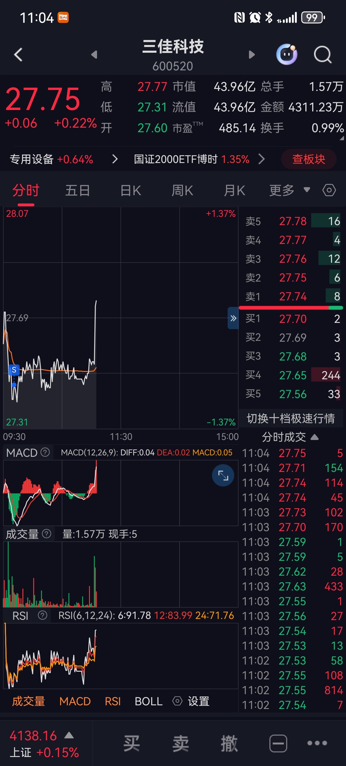 $三佳科技(SH600520)$ 又遭弄了,哈哈哈。