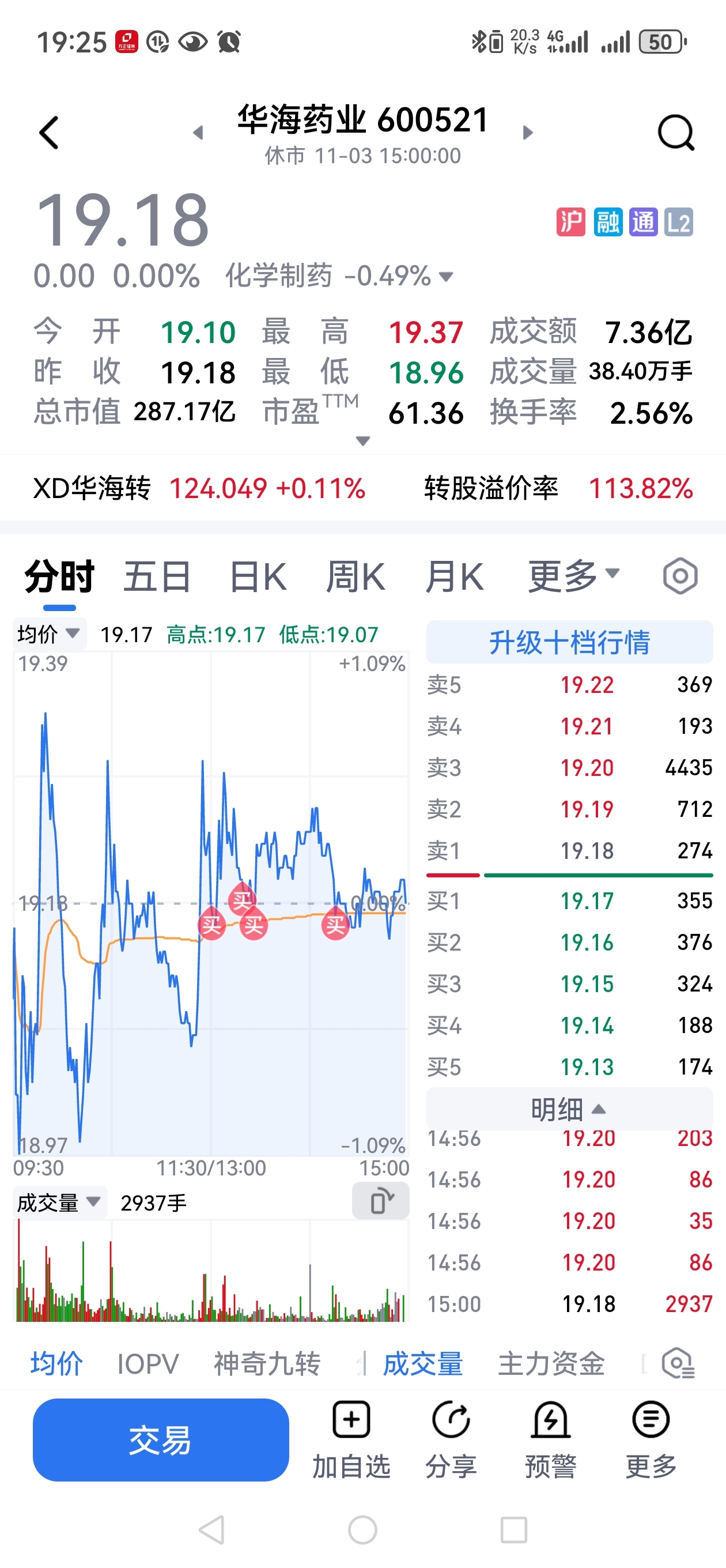 $华海药业(SH600521)$ 调整基本到位,买入,等待