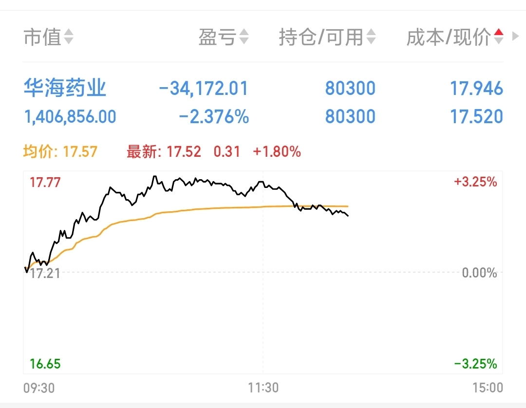 $华海药业(SH600521)$ 明显的洗盘,快回本了