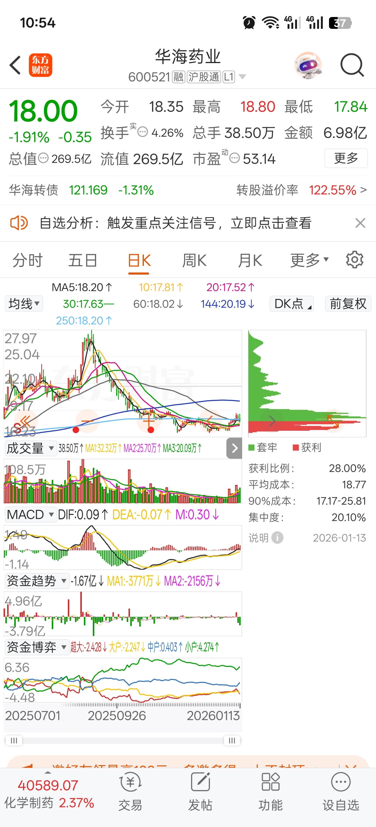 $华海药业(SH600521)$ 上方筹码还没洗掉,不会出现连续大阳的