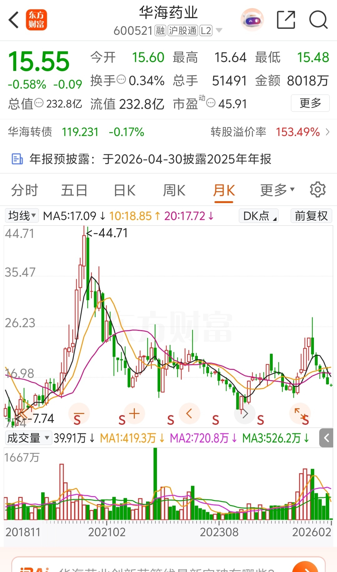 $华海药业(SH600521)$ 连续跌6个月,服,含泪补仓。