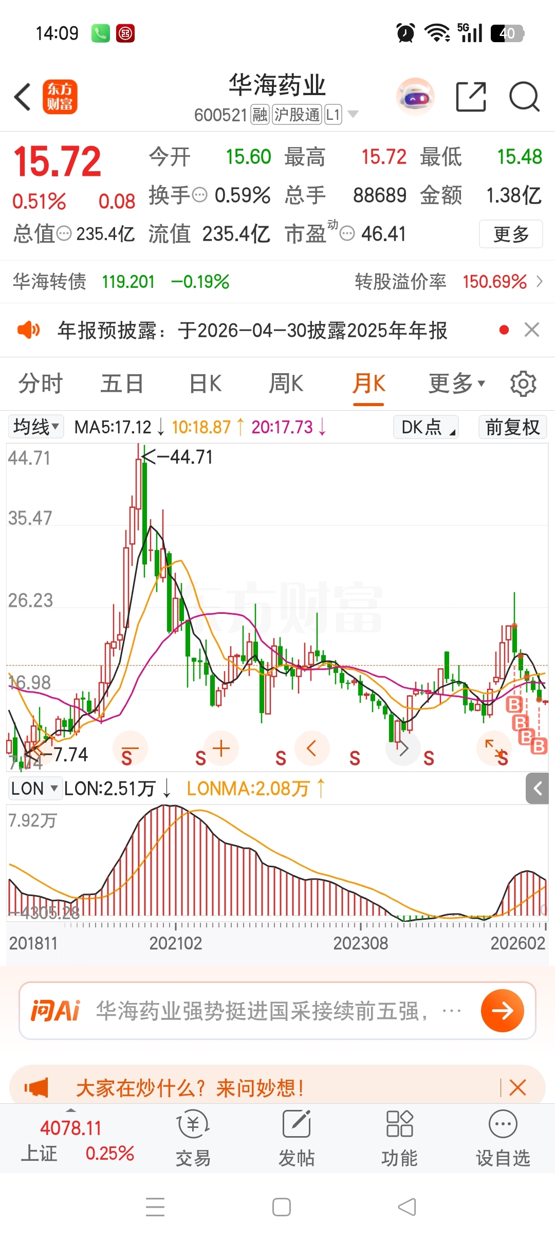 $华海药业(SH600521)$ 畜和谐牲,怎么不跌了,我还有一万块等着你跌到7块再补呢
