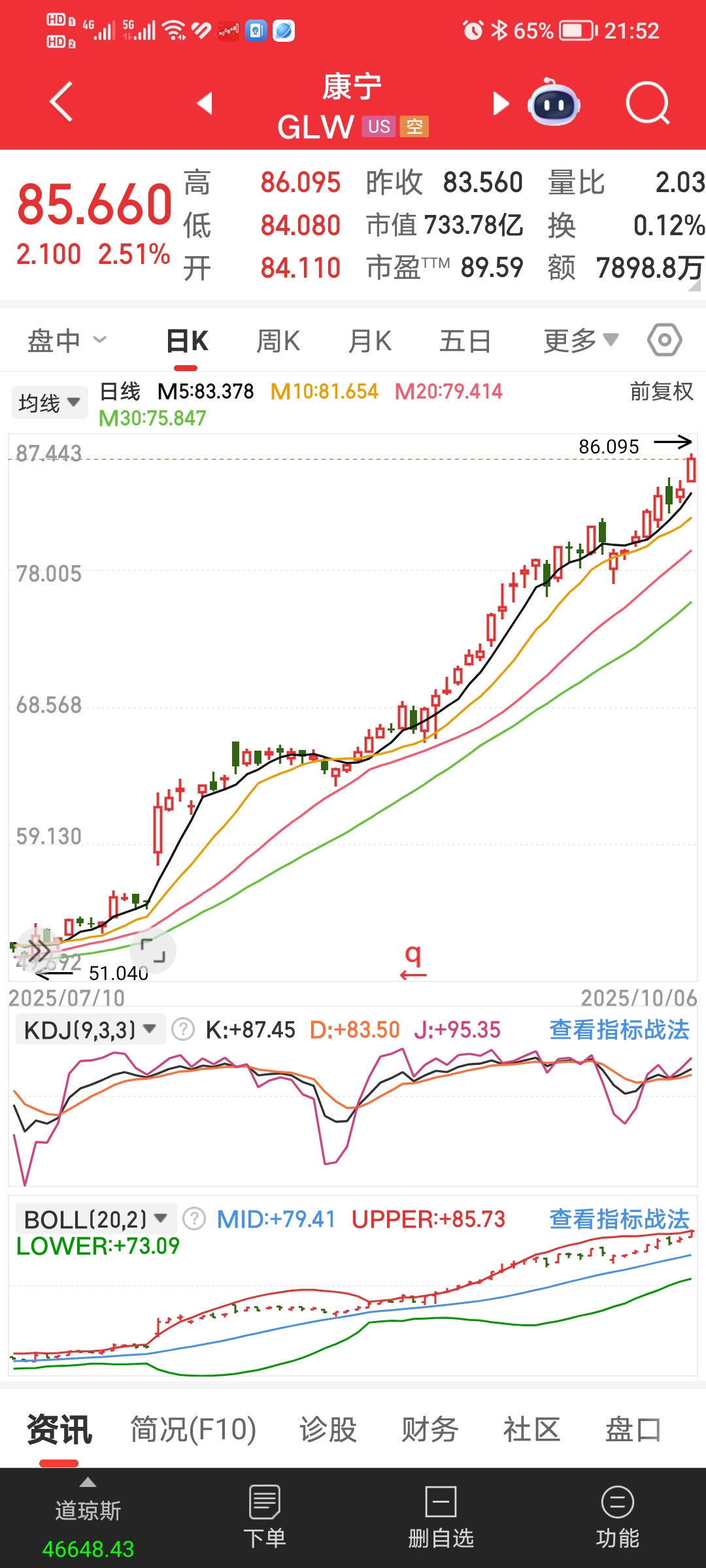 $中天科技(SH600522)$ 美国光纤股票股票一直创历史新高,目前90倍市盈率