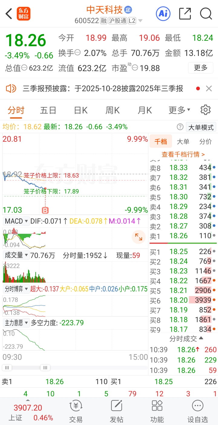 $中天科技(SH600522)$ 真要调整了?这次应该不会是20日线级别调整吧?