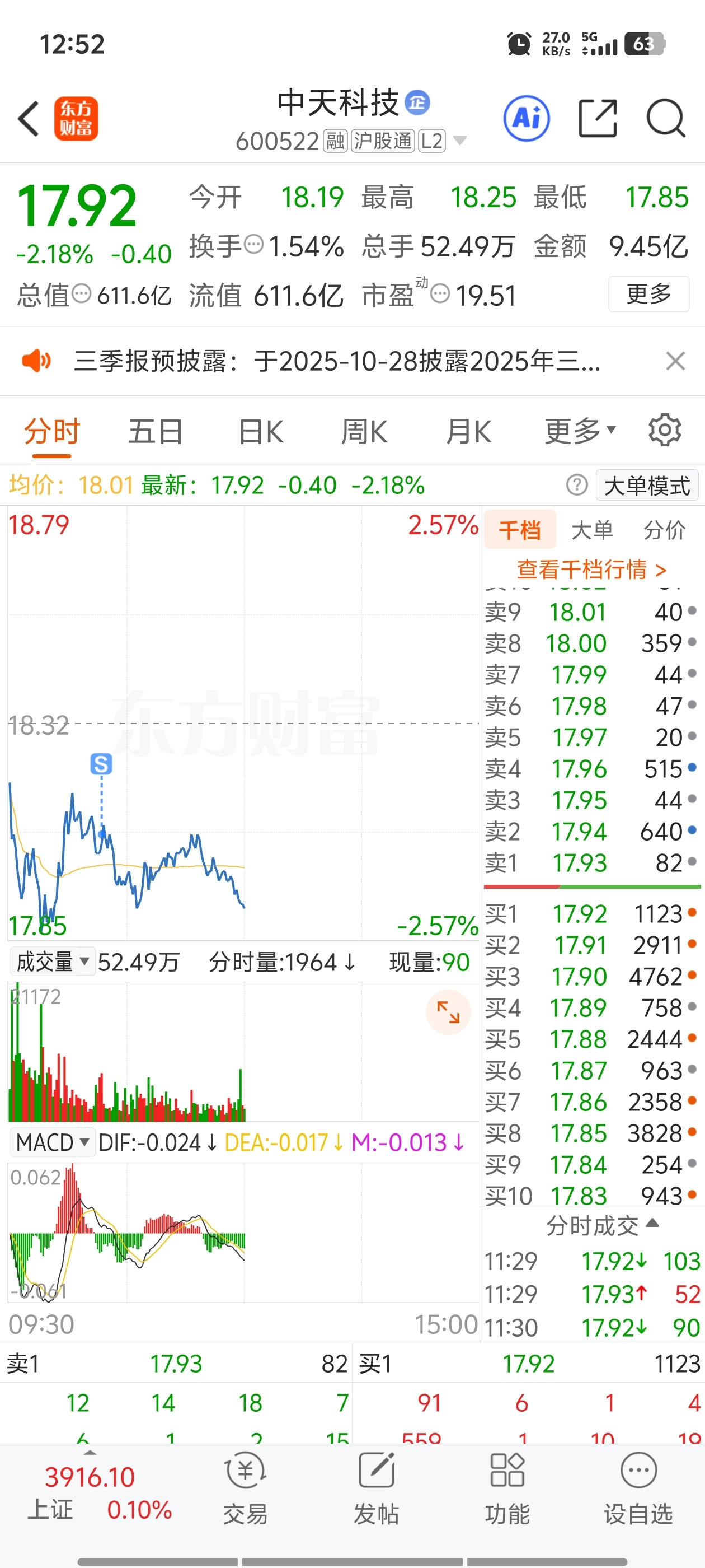 $中天科技(SH600522)$ 好垃圾,亏个手续费割了你。