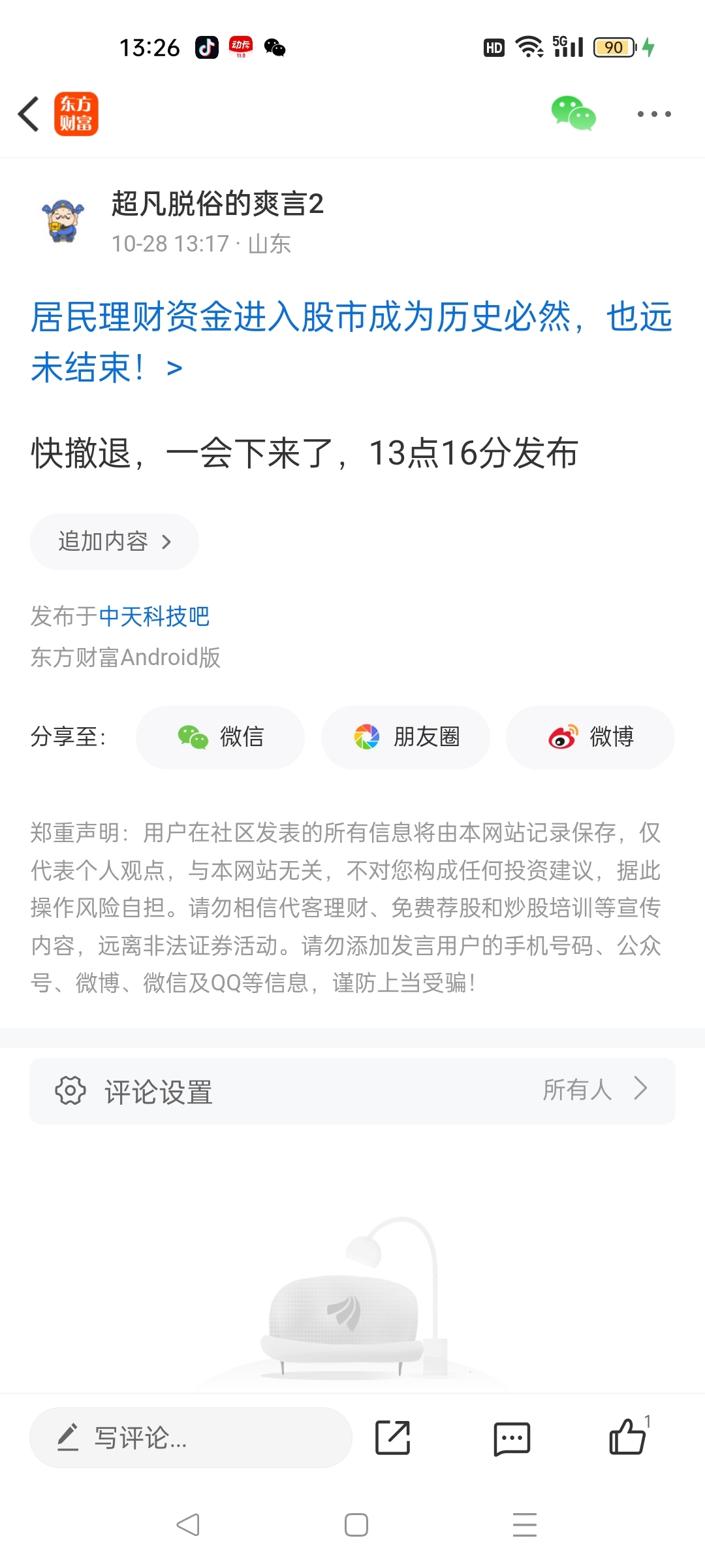 温馨提示: 1.根据《证券法》规定,禁止编造、传播虚假信息或者误导性信息,扰乱证券市场;2.用户在本社区发表的所有资料、言论等仅代表个人观点,与本网站立场无关,不对您构成任何投资建议。用户应基于自己的独立判断,自行决定证券投资并承担相应风险。《东方财富社区管理规定》