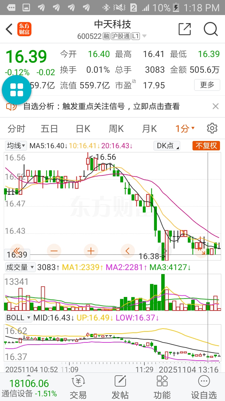 $中天科技(SH600522)$ 见16.398可以补仓买进