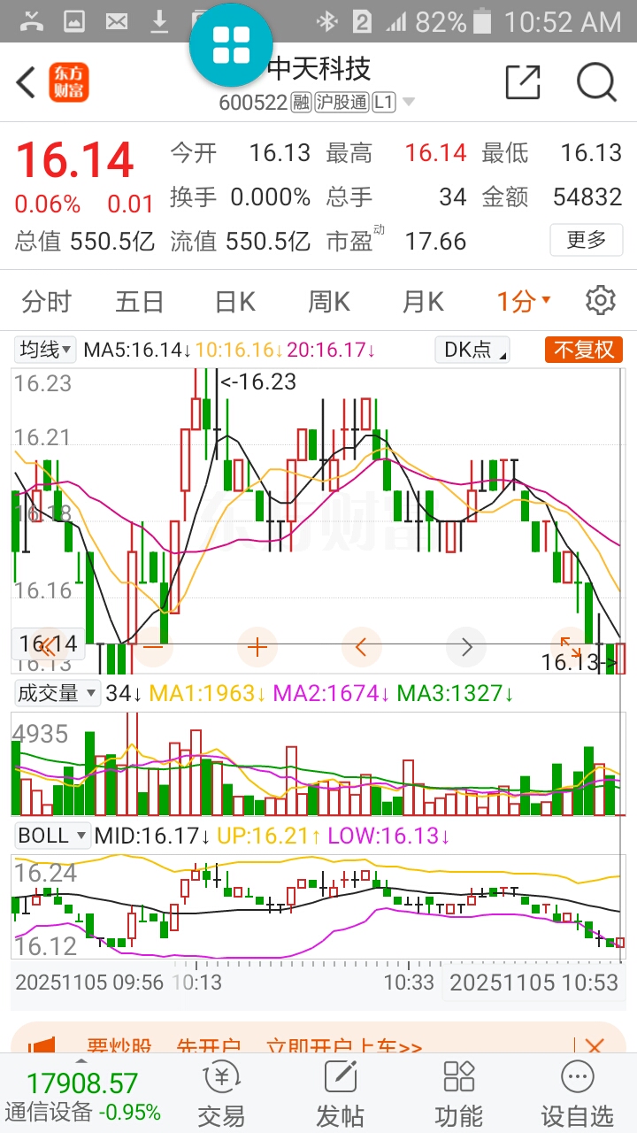 $中天科技(SH600522)$ 再向上就会突破16.23,达到16.25