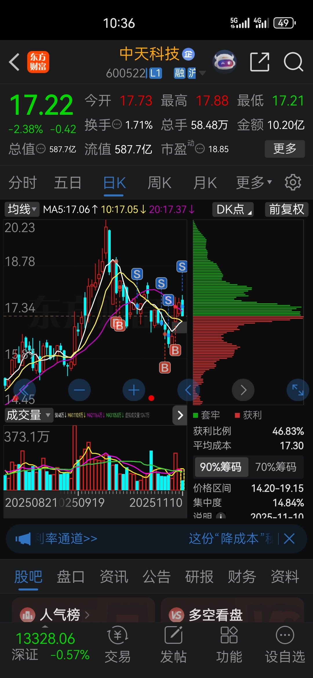 $中天科技(SH600522)$ 留下发财吧,亏了一万,等跌到15块我在回来