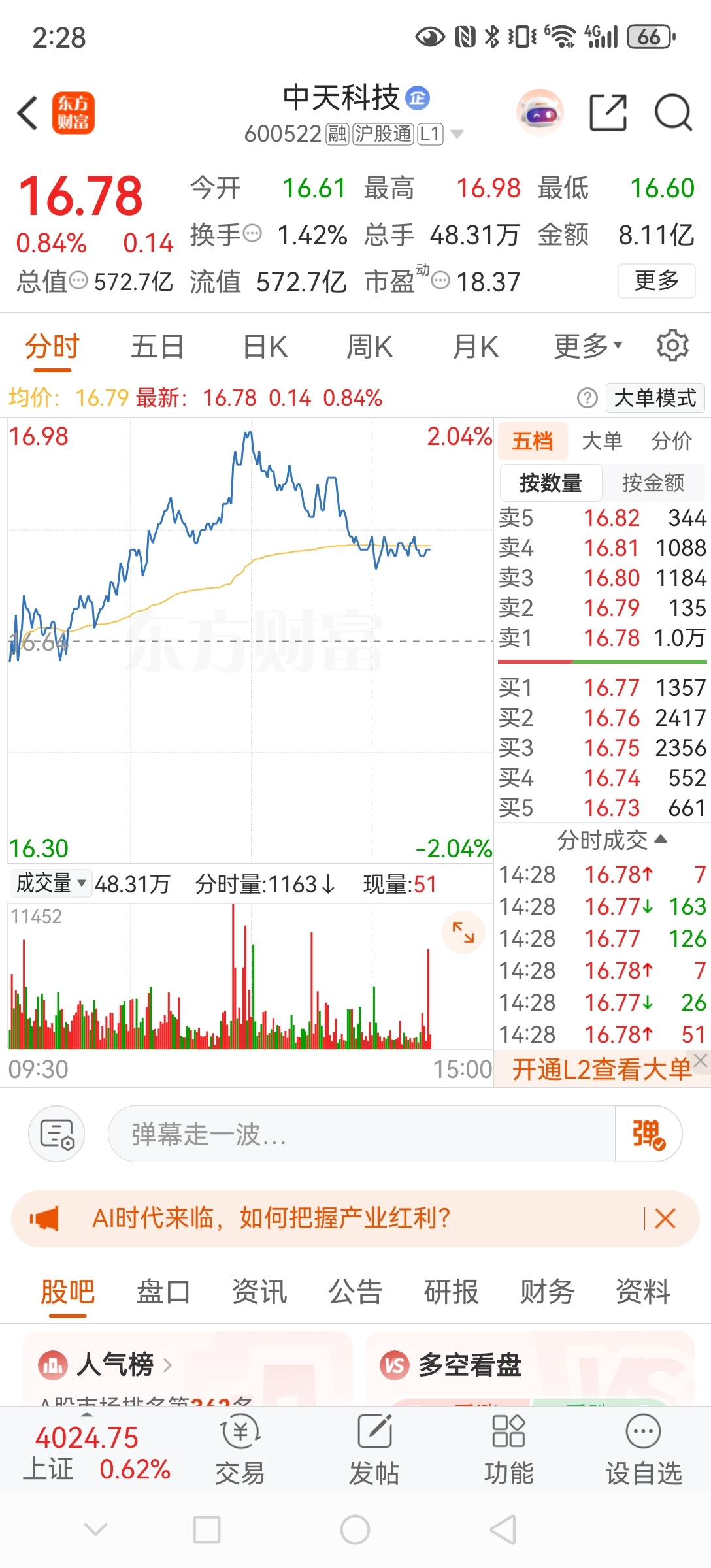 $中天科技(SH600522)$ 这个位置压单?