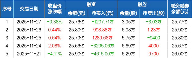 中天科技:融资净偿还1297.71万元,融资余额25.76亿元(11-27)