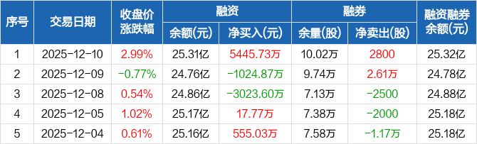 中天科技:融资净买入5445.73万元,融资余额25.31亿元(12-10)