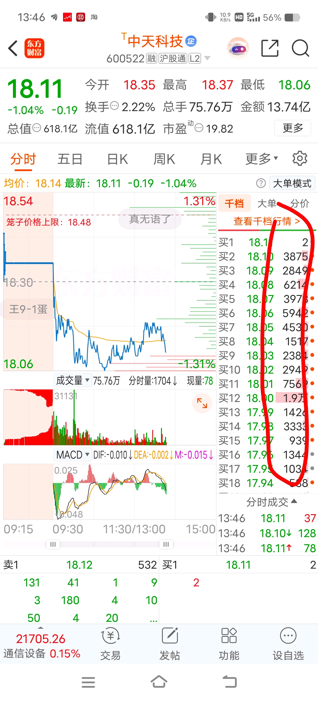 $中天科技(SH600522)$ 无视指数可板块上涨,未来准备持续大跌多久,这拖单有得跌了