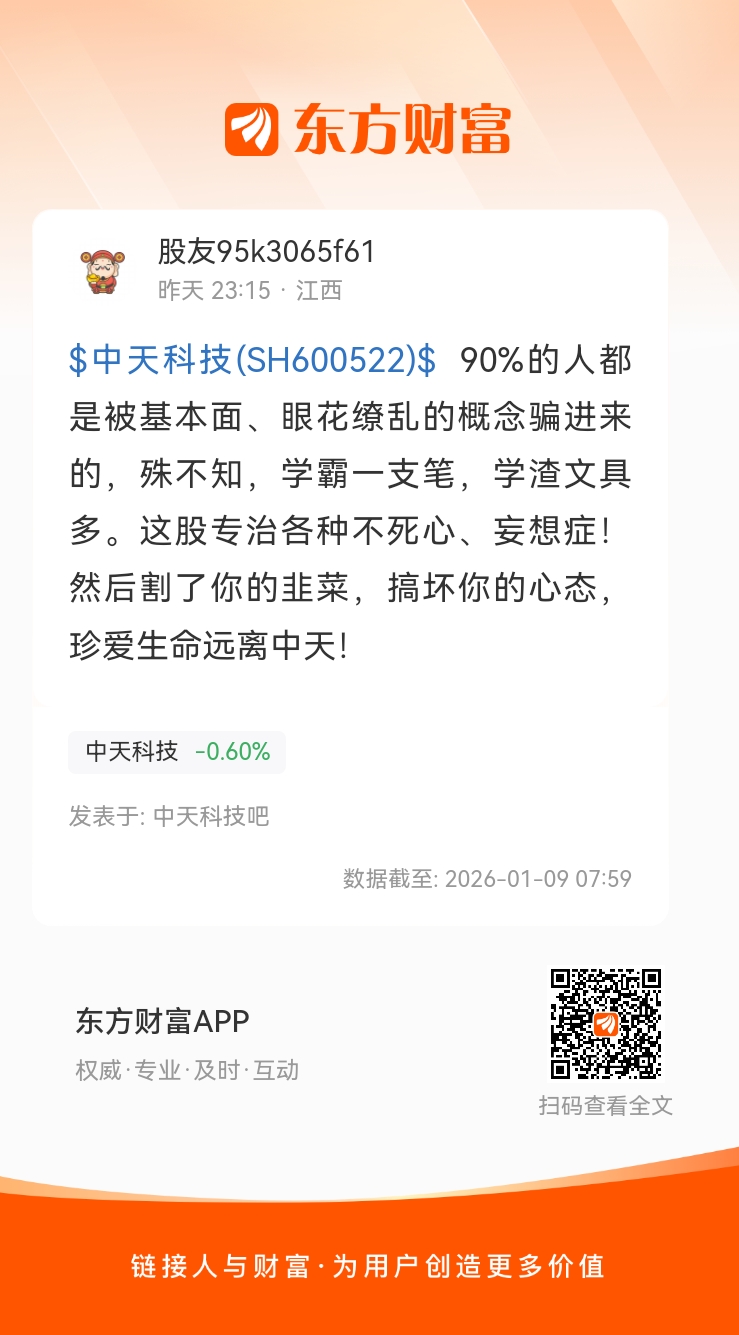 温馨提示: 1.根据《证券法》规定,禁止编造、传播虚假信息或者误导性信息,扰乱证券市场;2.用户在本社区发表的所有资料、言论等仅代表个人观点,与本网站立场无关,不对您构成任何投资建议。用户应基于自己的独立判断,自行决定证券投资并承担相应风险。《东方财富社区管理规定》
