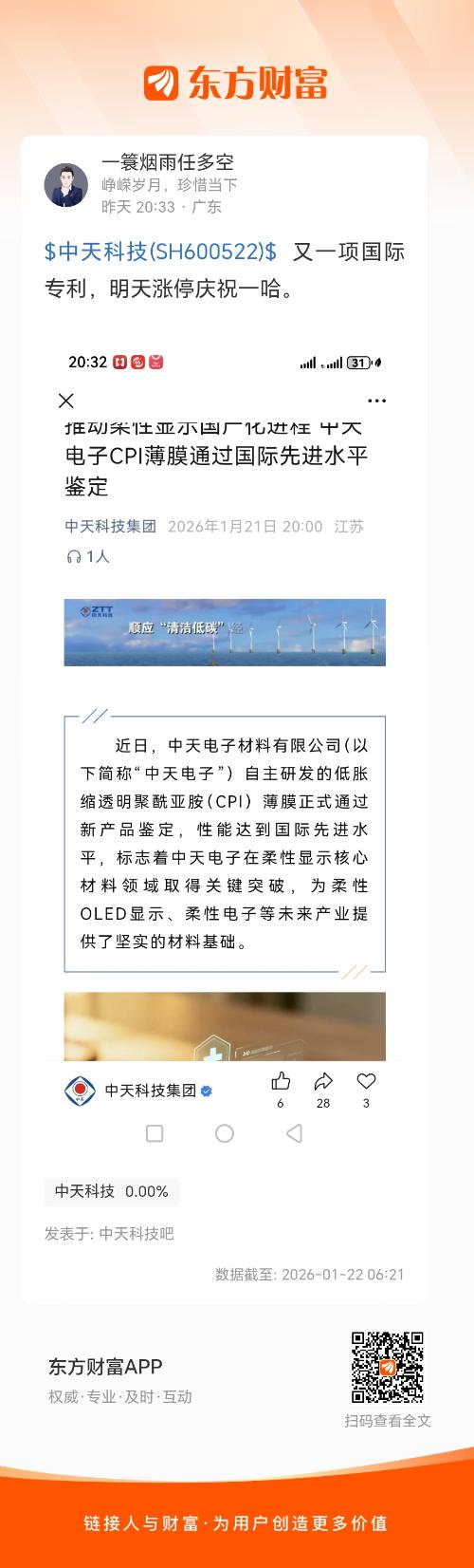 $中天科技(SH600522)$  又一项国际专利,明天涨停庆祝一哈。
