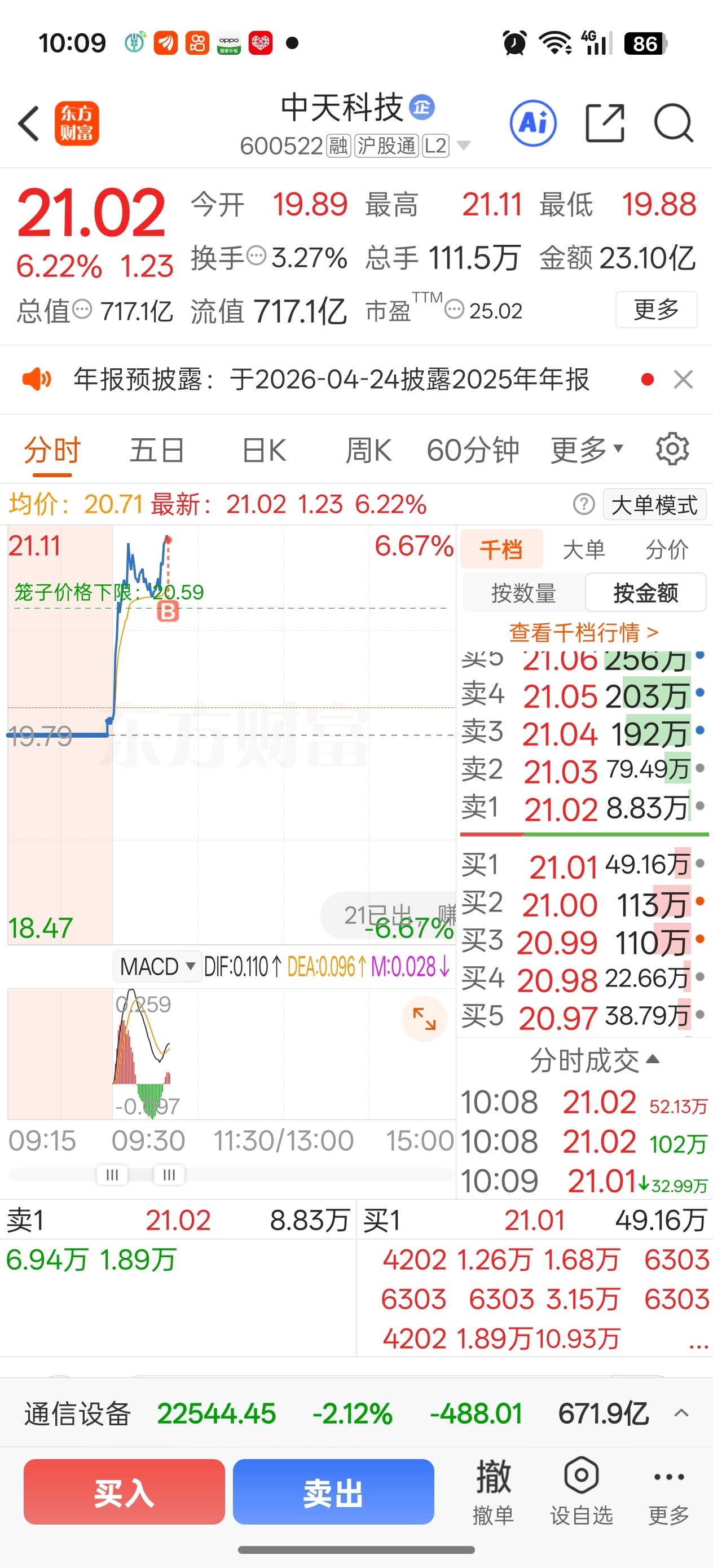 $中天科技(SH600522)$ 我要追涨了