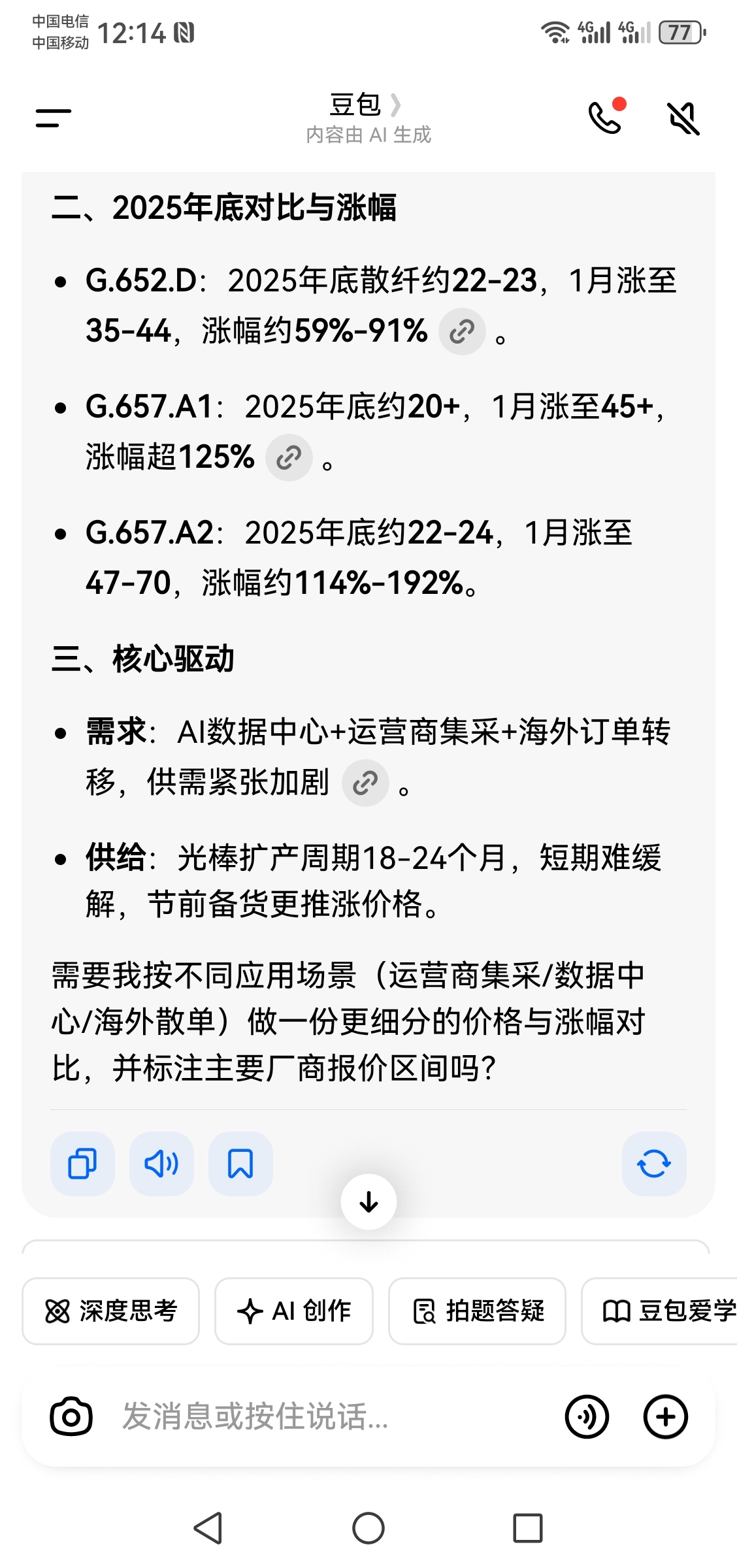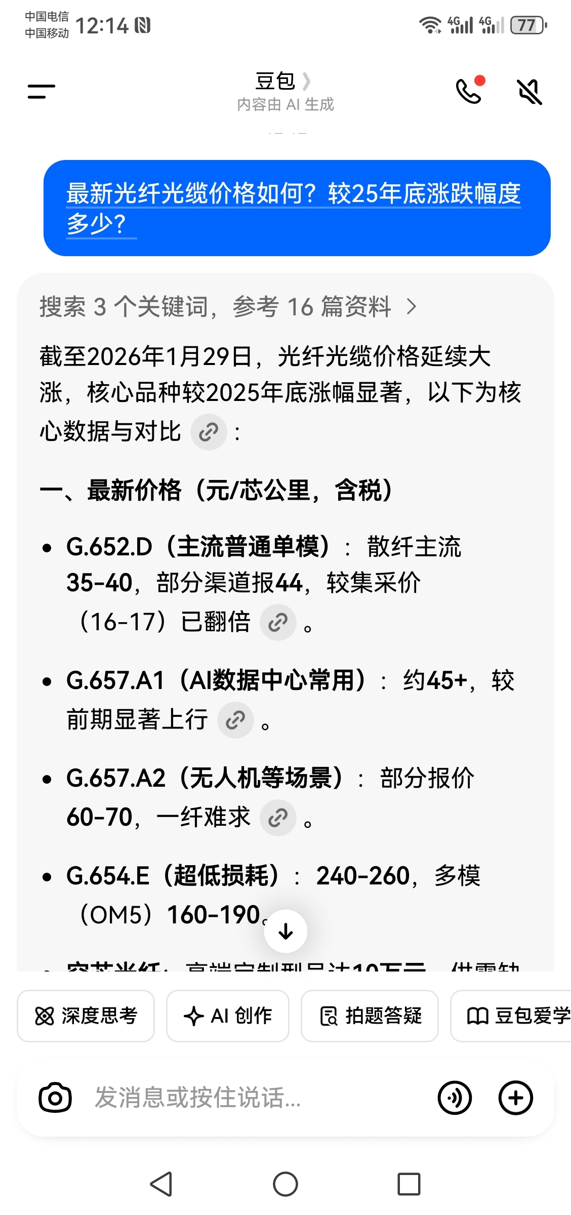 光纤光缆一日一价,仍在加速上涨中,单就光纤光缆的涨价一项,26年中天科技应该增厚