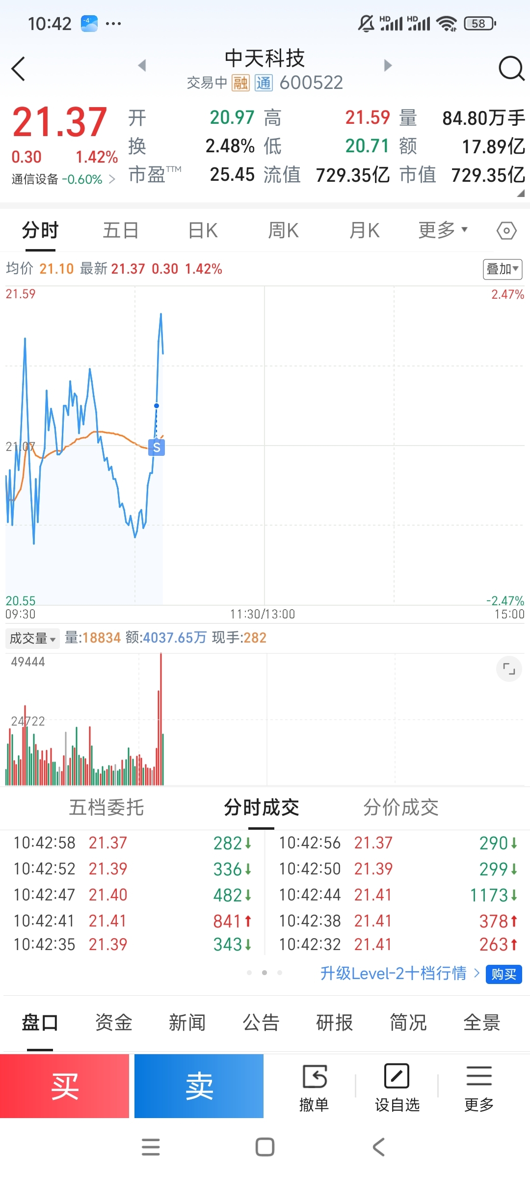 $中天科技(SH600522)$ 想着瞎挂个单玩玩,反正今天大盘不好难涨,没想到成交了,没来得及撤单