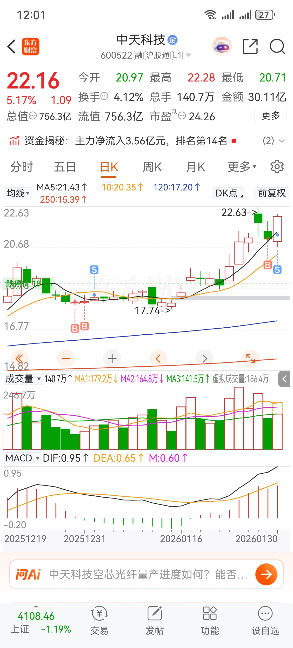 $中天科技(SH600522)$ 卖飞了啊,虽然没有水下卖,但是2个点卖的呀