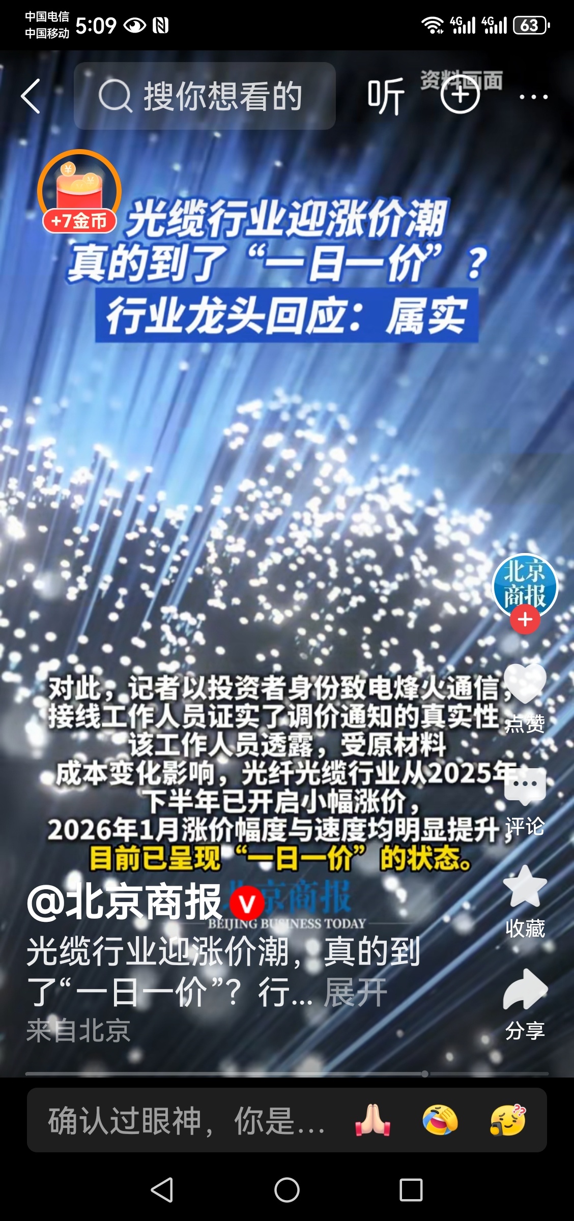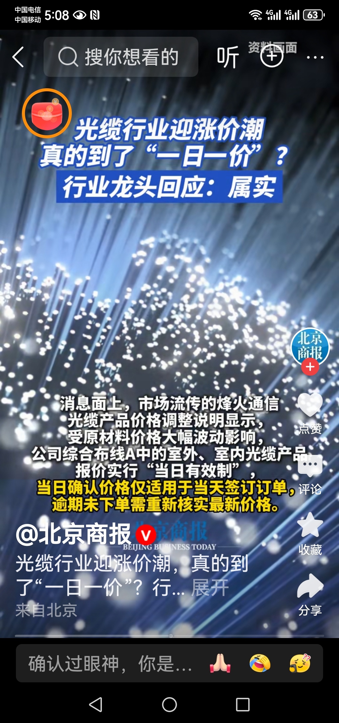 光纤光缆一日一价,涨!涨!涨不停!中天股价也必然会涨,涨,涨不停,不停涨!