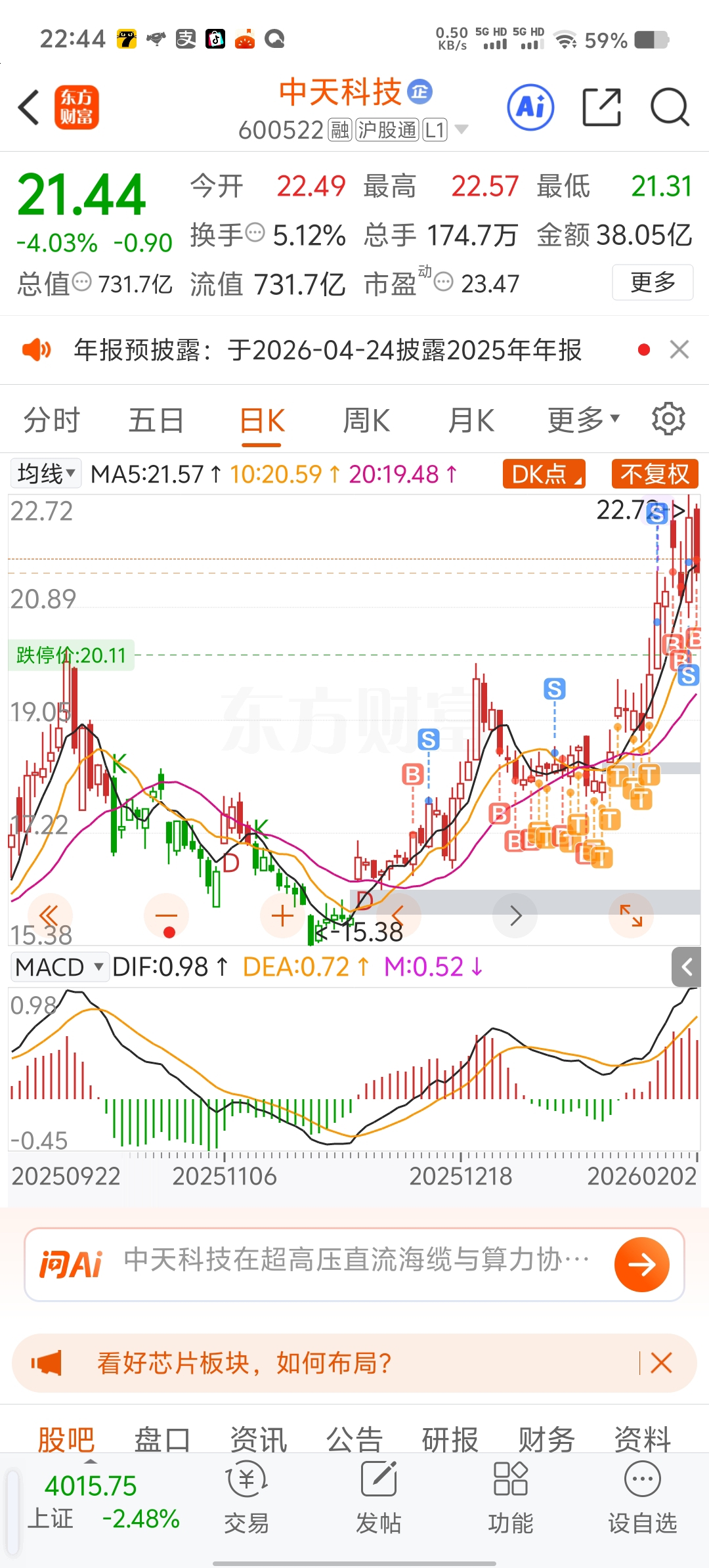 $中天科技(SH600522)$ 这换手不出新高回调,阶段性调整在所难免,明天得拼手速啦!