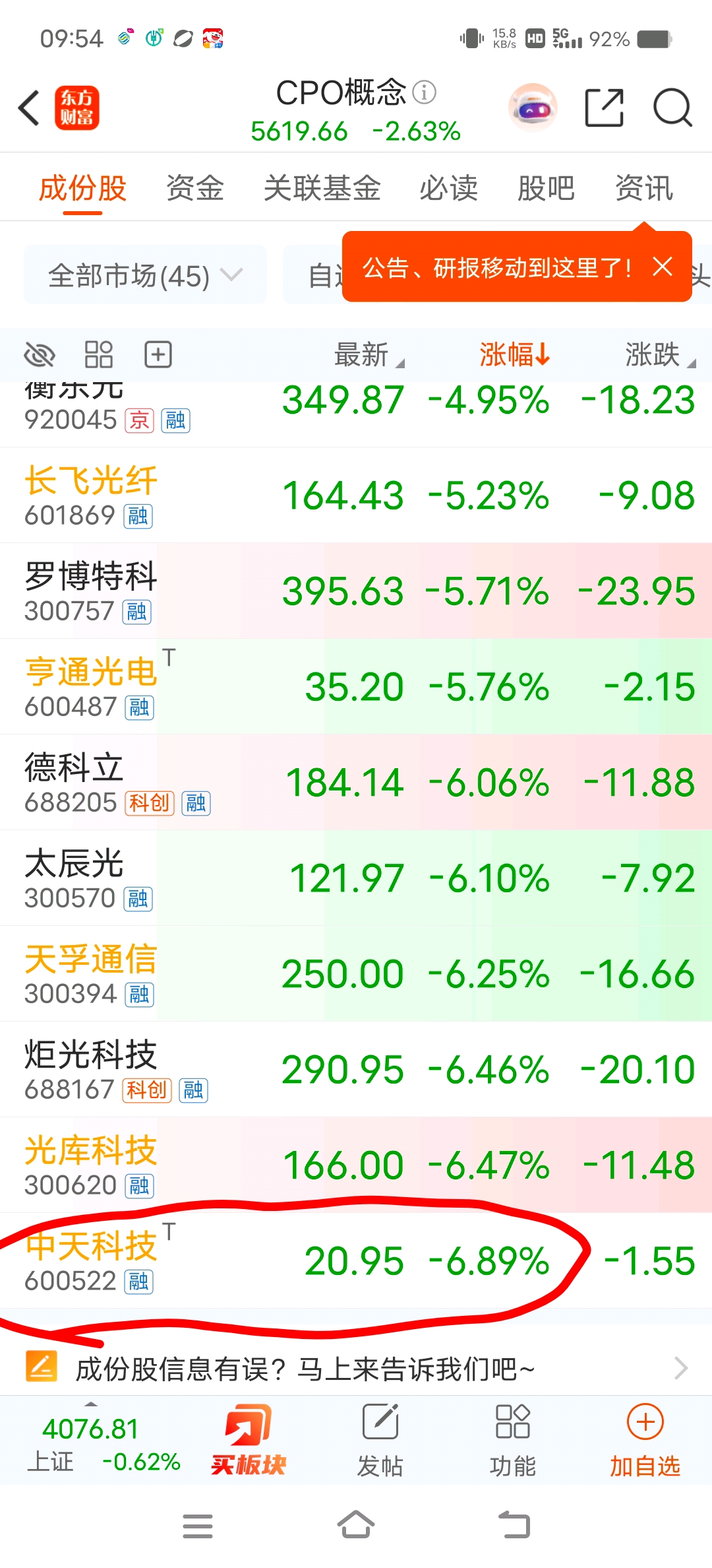 $中天科技(SH600522)$ 马的 CPO 倒数第一名?