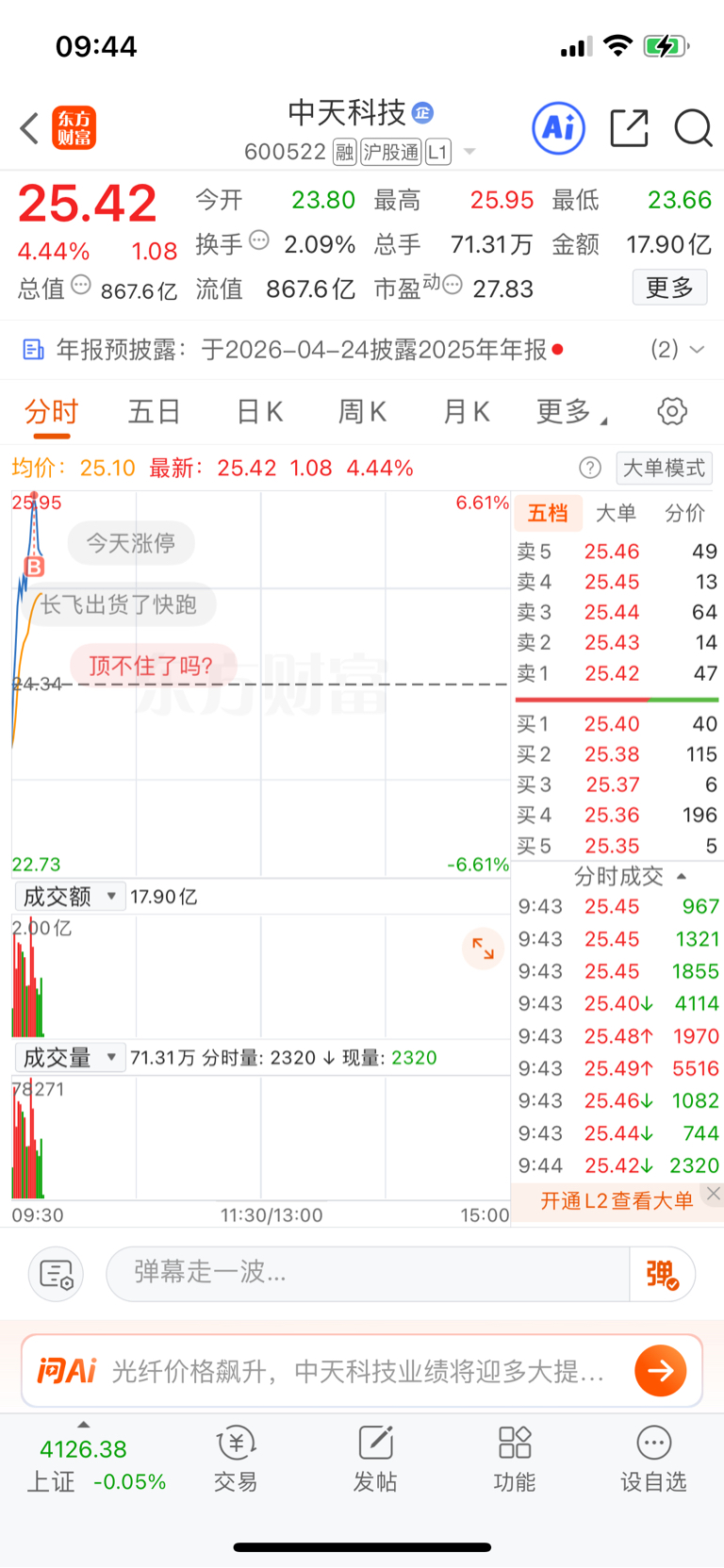$中天科技(SH600522)$ 买在尖尖上了,还有机会跑嘛