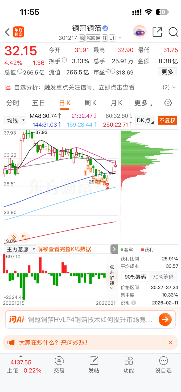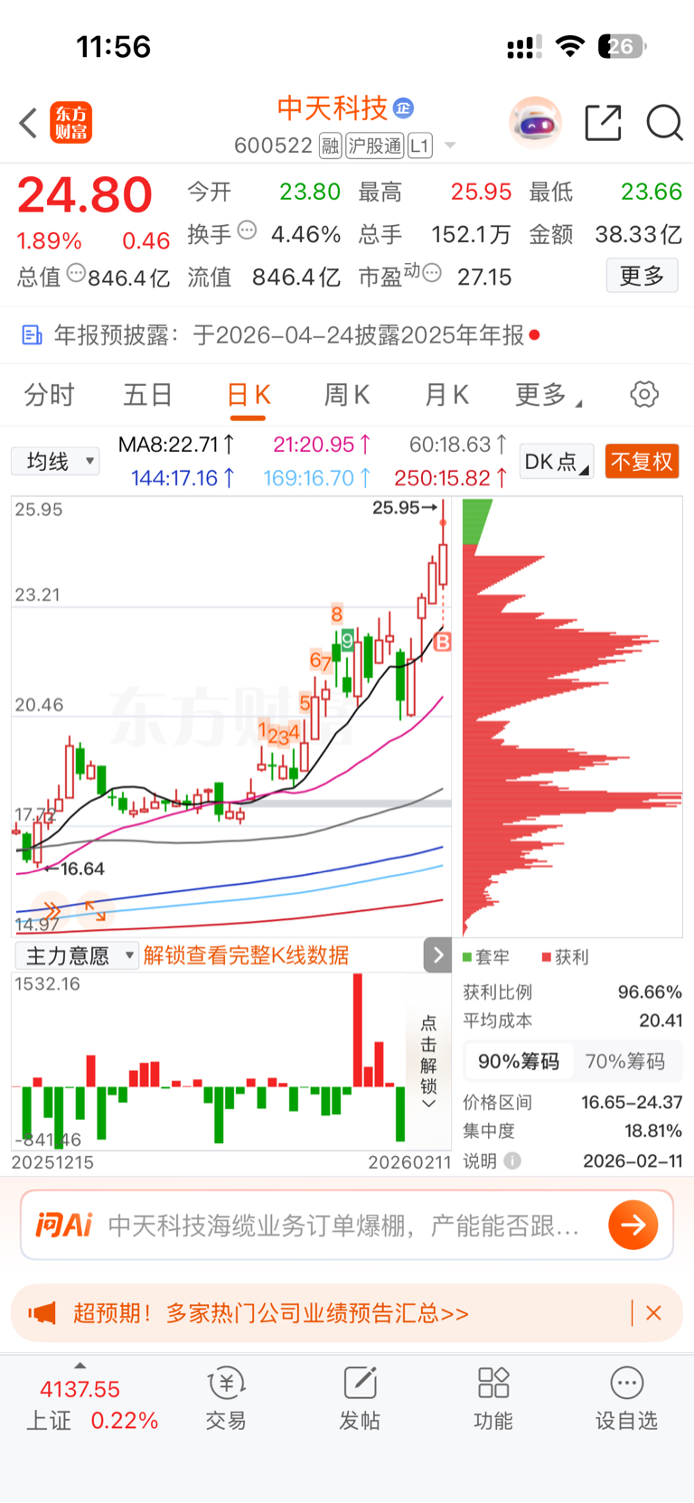 $中天科技(SH600522)$ 喜欢正泰电源的右侧上升爬坡;考虑铜冠的右侧向上、3字头20cm空间;中天的右侧走势、业绩稳健,买进才发现主力资金加大流出~节前最后的一只票。计划明天出,后天出金,空仓过节。明天会踩踏么