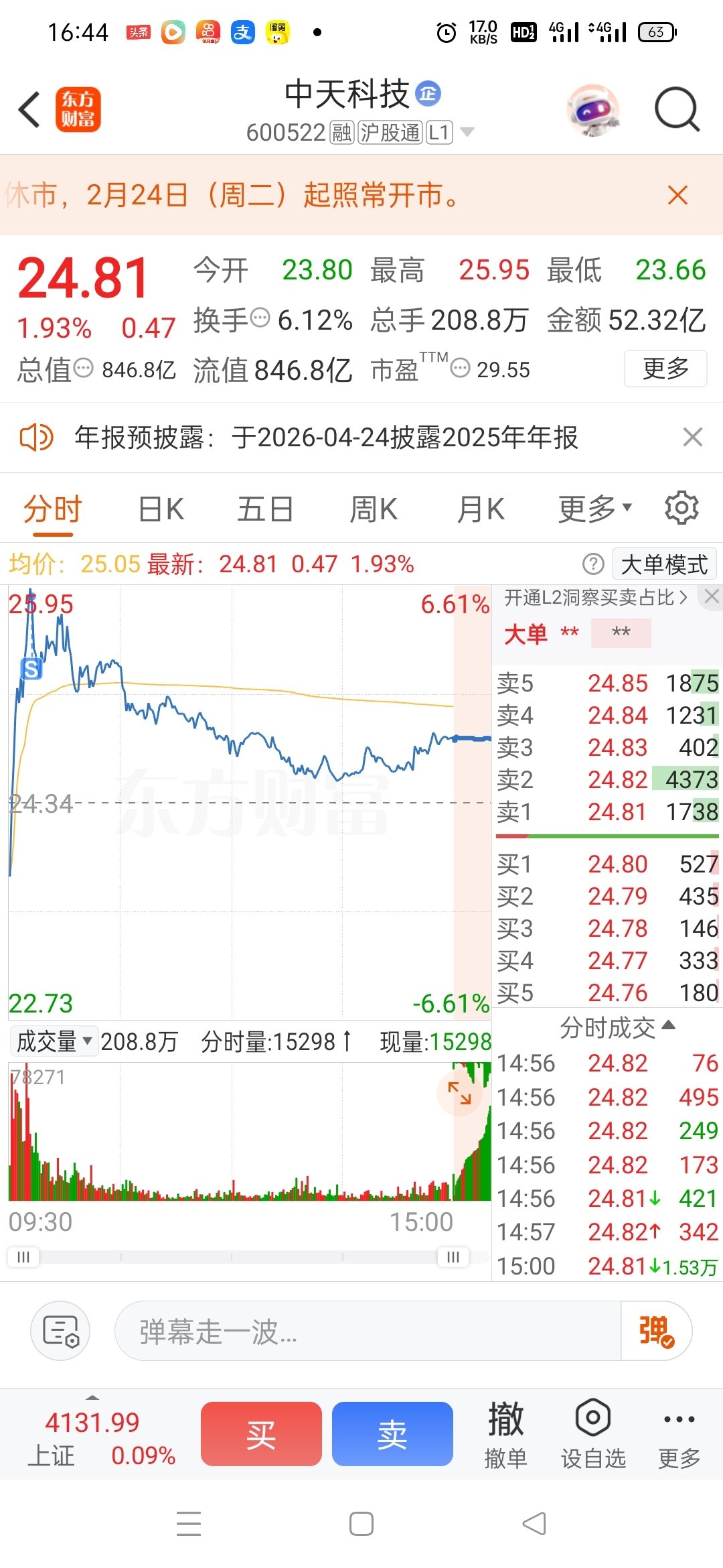 $中天科技(SH600522)$ 今天必须跑