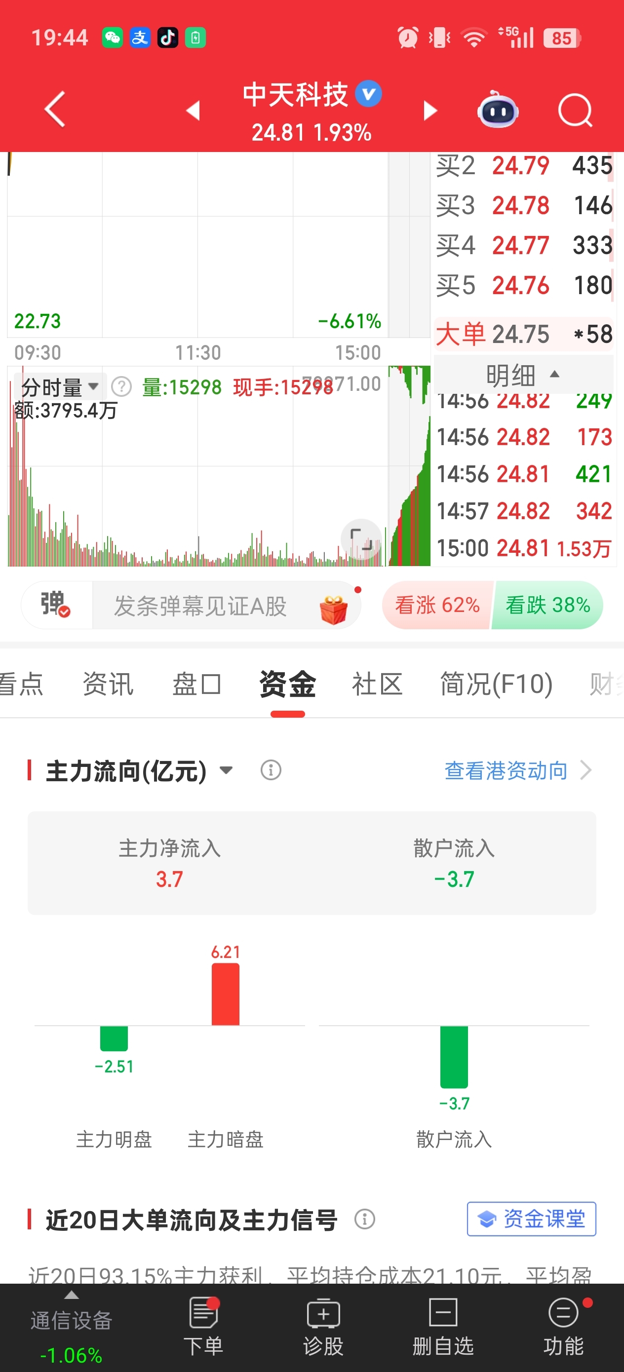 今天早上追高又被套了,是不是主力出货啊。看暗盘进了6.2亿,也不知道是不是搞错了