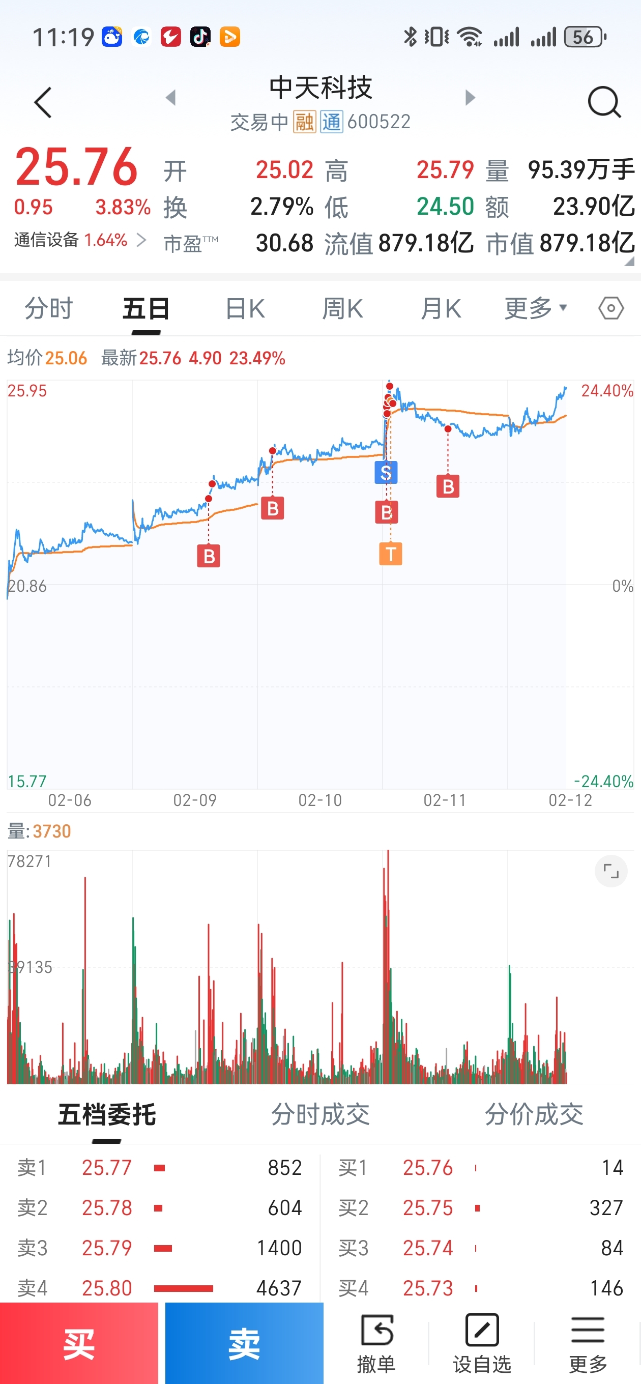 $中天科技(SH600522)$ 主力给力