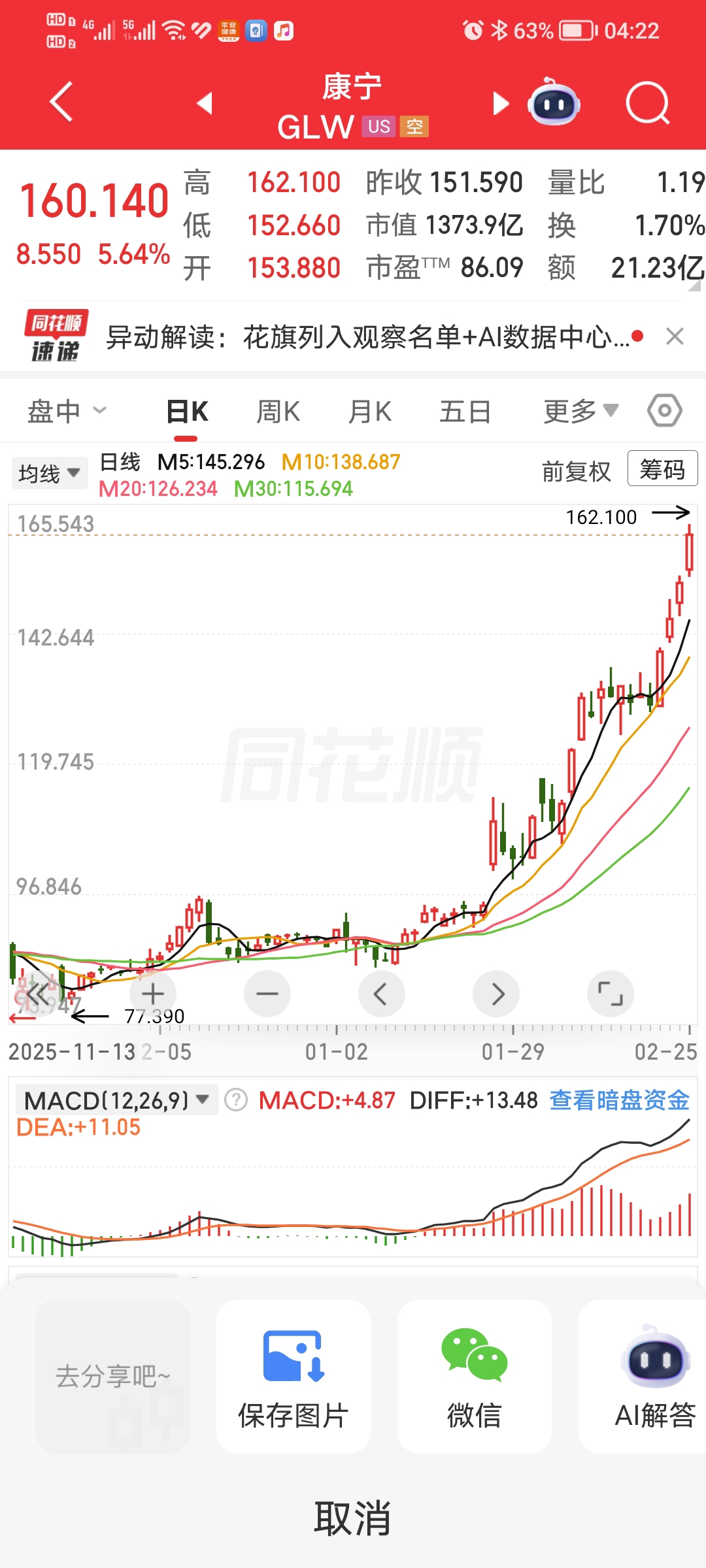 美国光纤股票康宁暴涨