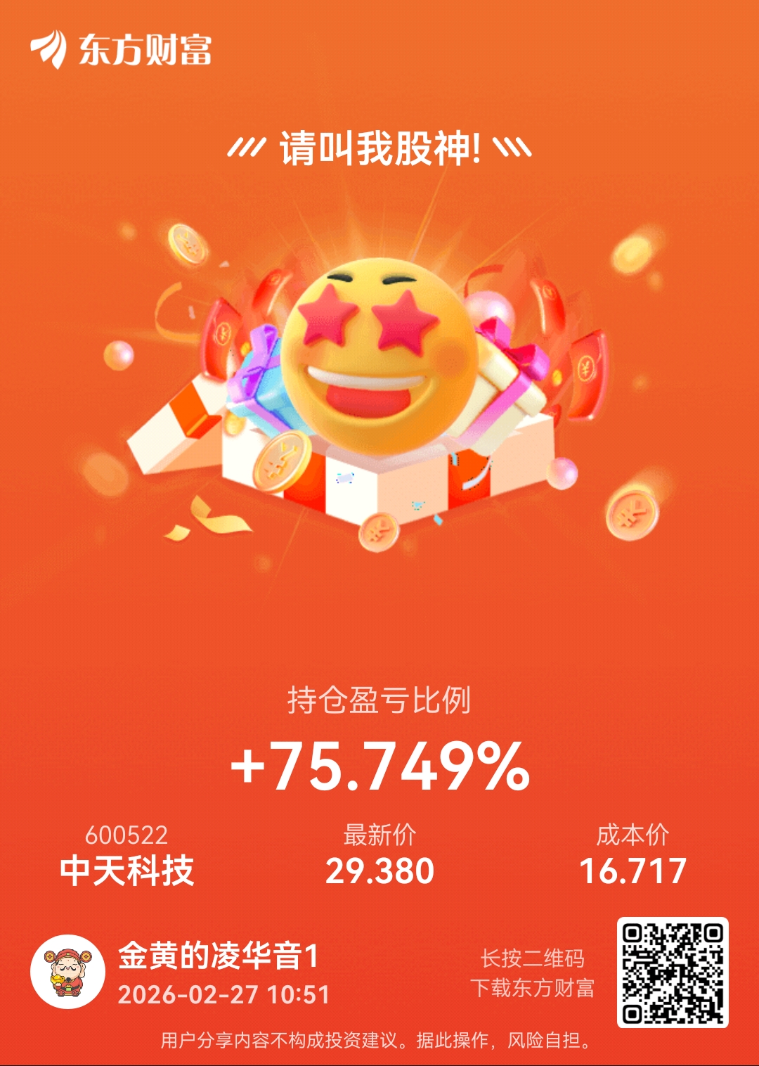 温馨提示: 1.根据《证券法》规定,禁止编造、传播虚假信息或者误导性信息,扰乱证券市场;2.用户在本社区发表的所有资料、言论等仅代表个人观点,与本网站立场无关,不对您构成任何投资建议。用户应基于自己的独立判断,自行决定证券投资并承担相应风险。《东方财富社区管理规定》