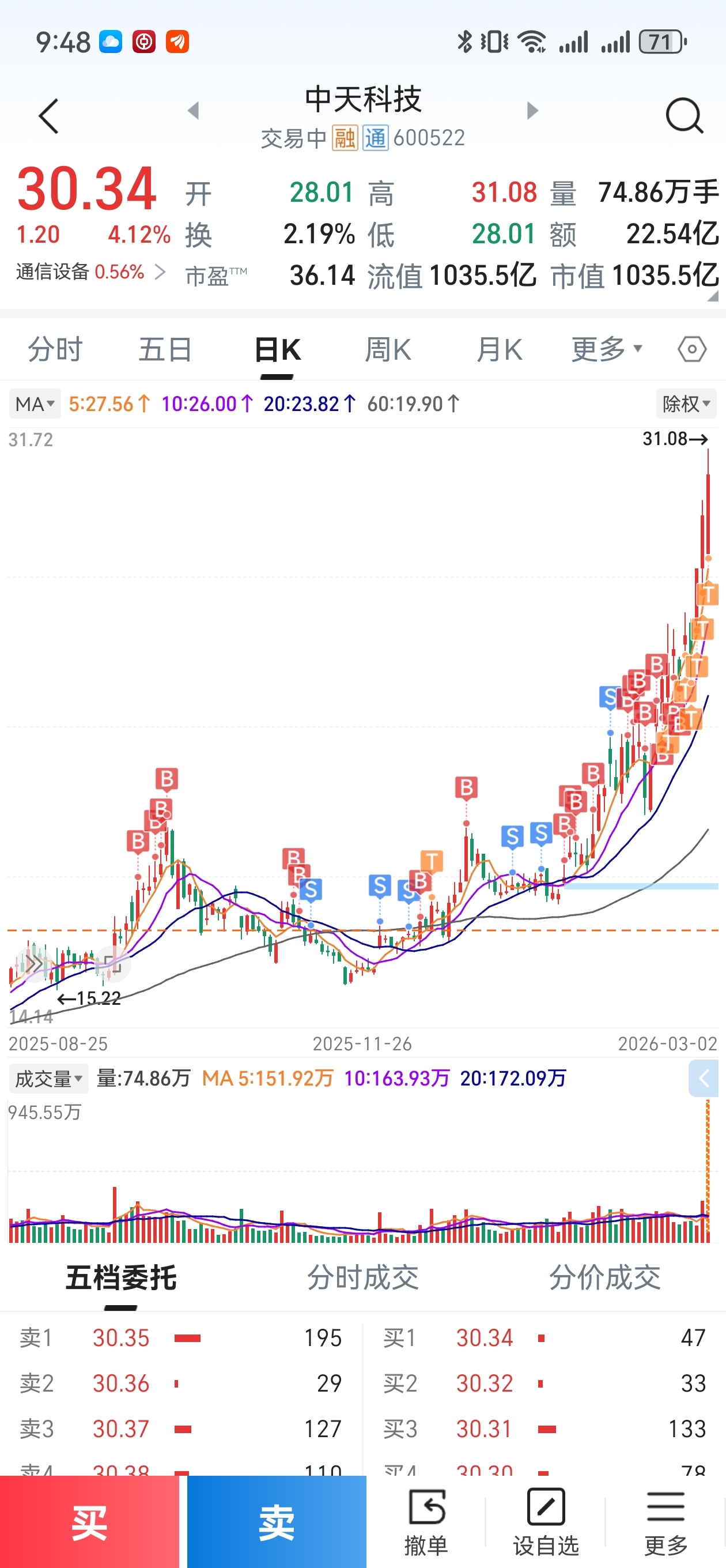 $中天科技(SH600522)$