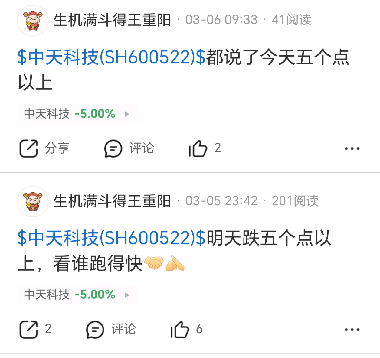 $中天科技(SH600522)$ 周四听进去的,就不用吃面了,明天周一继续跌五个点