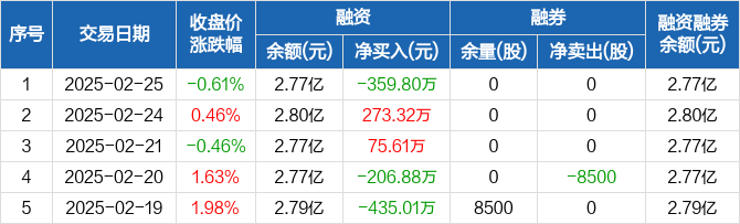 贵航股份:融资净偿还359.8万元,融资余额2.77亿元(02-25)