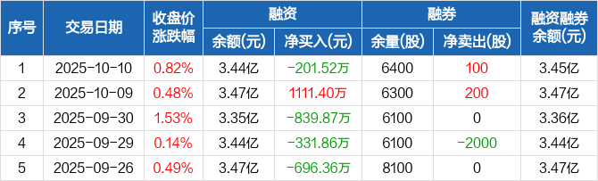 贵航股份:融资净偿还201.52万元,融资余额3.44亿元(10-10)