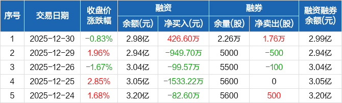 贵航股份:融资净买入426.6万元,融资余额2.98亿元(12-30)