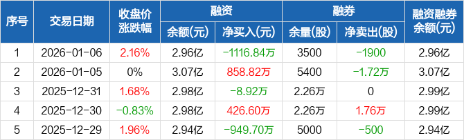 贵航股份:融资净偿还1116.84万元,融资余额2.96亿元(01-06)