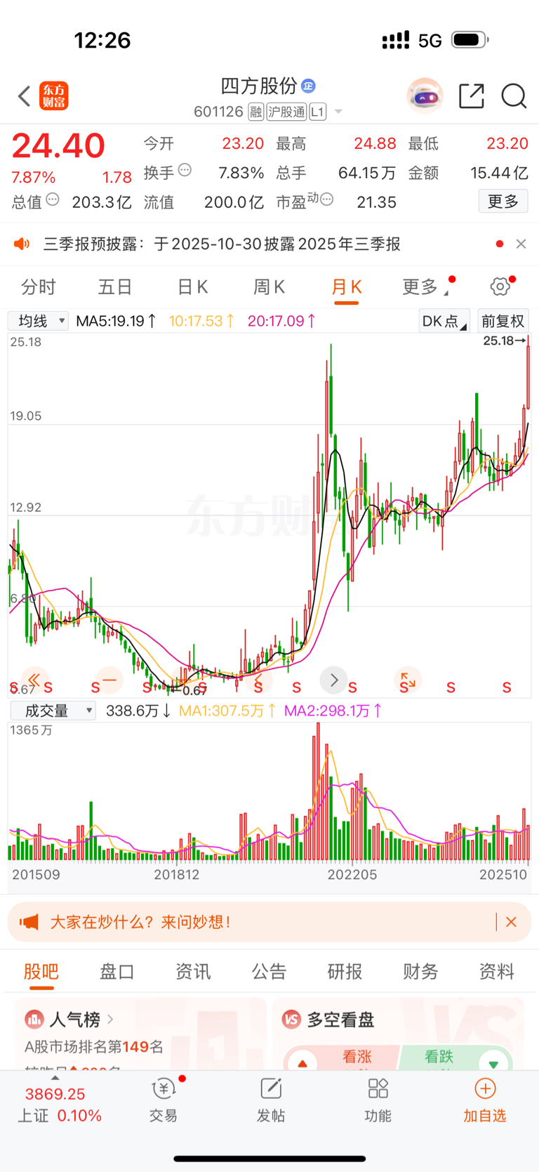 $ST长园(SH600525)$ 四方股份突破历史新高!